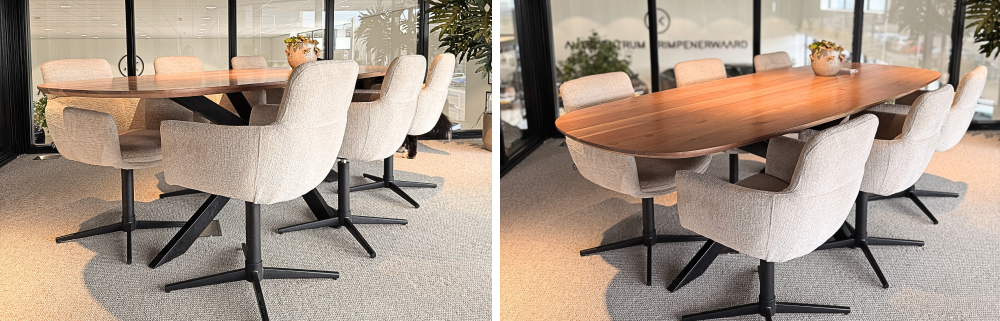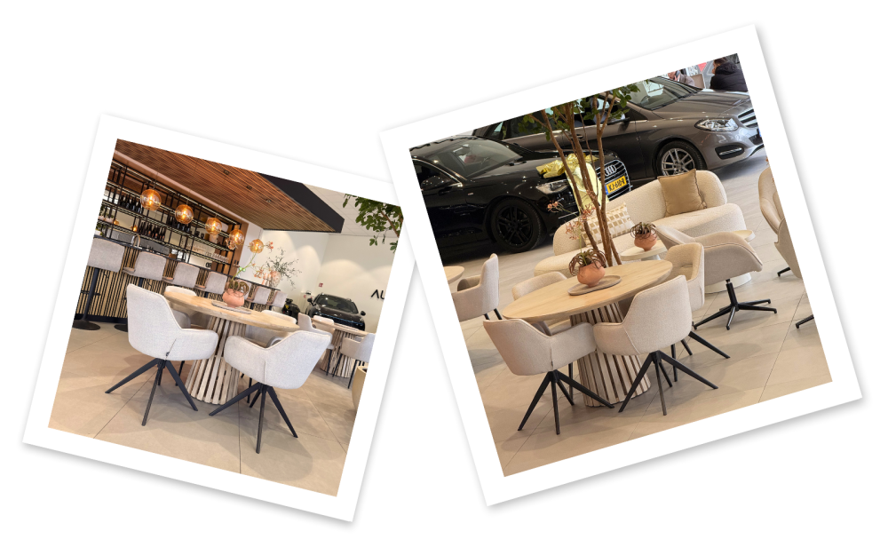 Toen ik mijn weg naar boven vervolgde, ontdekte ik de werk- en vergaderruimtes van het team van Autocentrum Krimpenerwaard. Strak ingericht, overzichtelijk en vol designmeubels. Hier zag ik onze luxe draaistoelen Noud, gecombineerd met bestseller eettafel Dana. Een perfecte setting om relaxed en in stijl te vergaderen!
