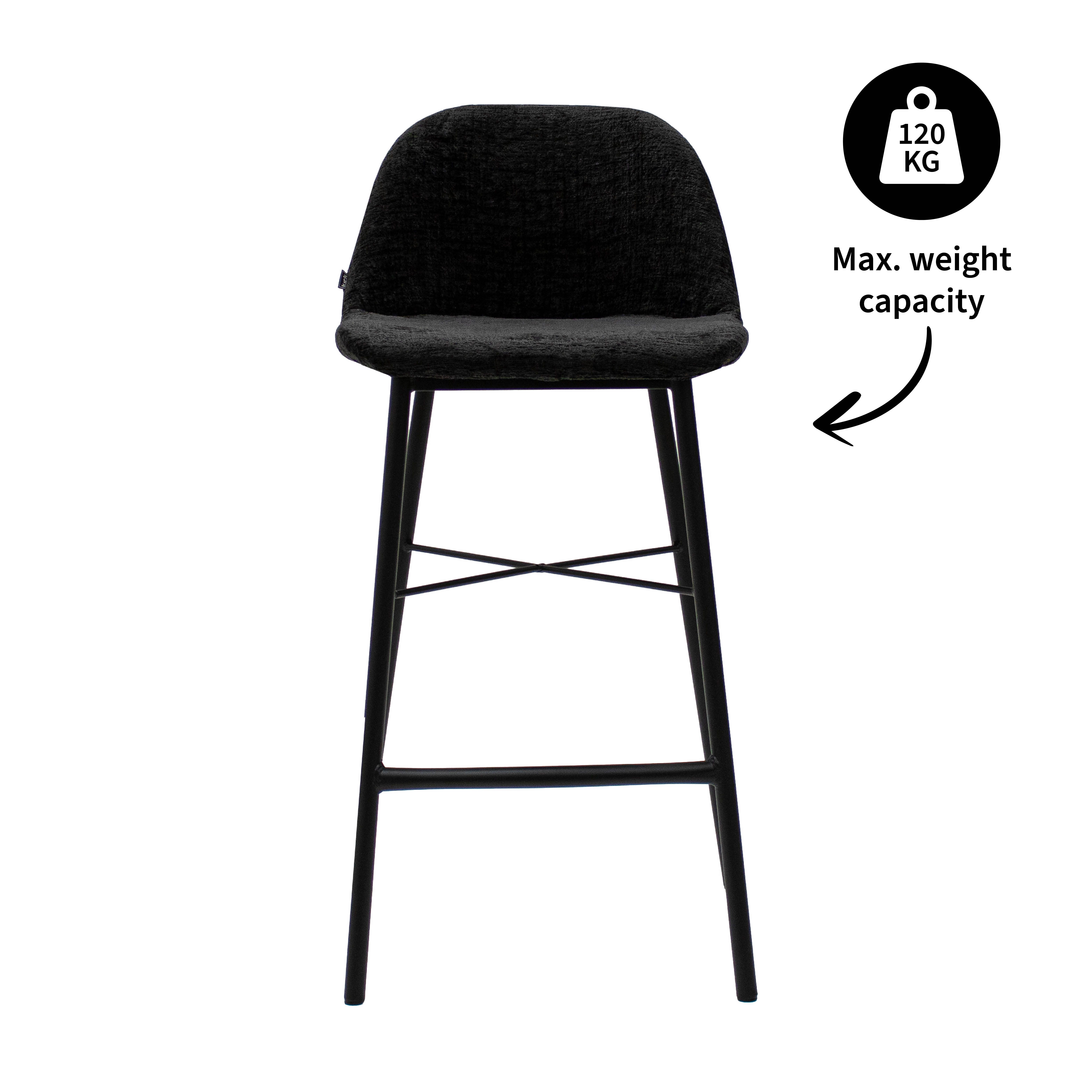 Meet barkruk Joel! Deze moderne barkruk is onze oude vertrouwde Jeff in een nieuw jasje! Door de comfortabele rugleuning en fijne zitting is hij uitermate geschikt voor een ontbijt of lekkere borrel aan jouw keukeneiland/bar. De kuip is gestoffeerd met een zachte texture stof wat voor een chique touch zorgt, in combinatie met het zwart metalen frame geeft dit de uitstraling die je zoekt! Joel is verkrijgbaar in een scala aan toffe kleuren waardoor je hem moeiteloos kunt combineren met de rest van jouw interieur.