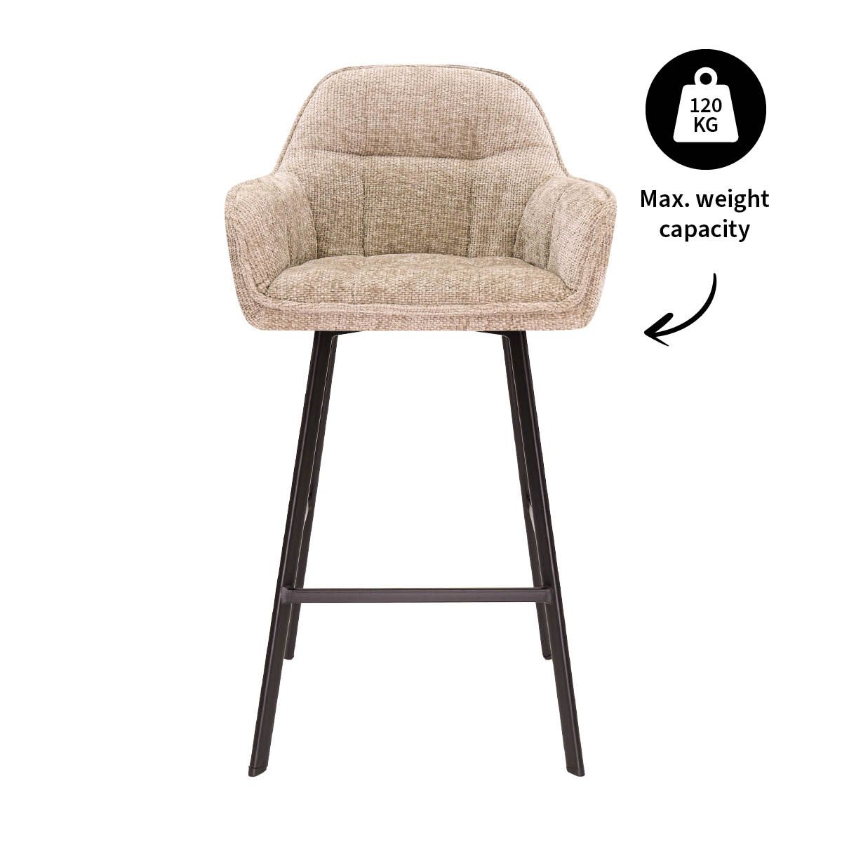 Gebaseerd op het design van onze populaire eetkamerstoel LUC, tilt barkruk LYNN het vertrouwde comfort en de moderne luxe moeiteloos naar bar- en eilandhoogte. Dankzij de comfortabele zitting met grove chenille stof brengt LYNN warmte en elegantie in iedere ruimte. De zachte rondingen van de zitting zorgen voor ergonomisch zitcomfort, ideaal voor lange borrelavonden of gezellige momenten aan het keukenblad.