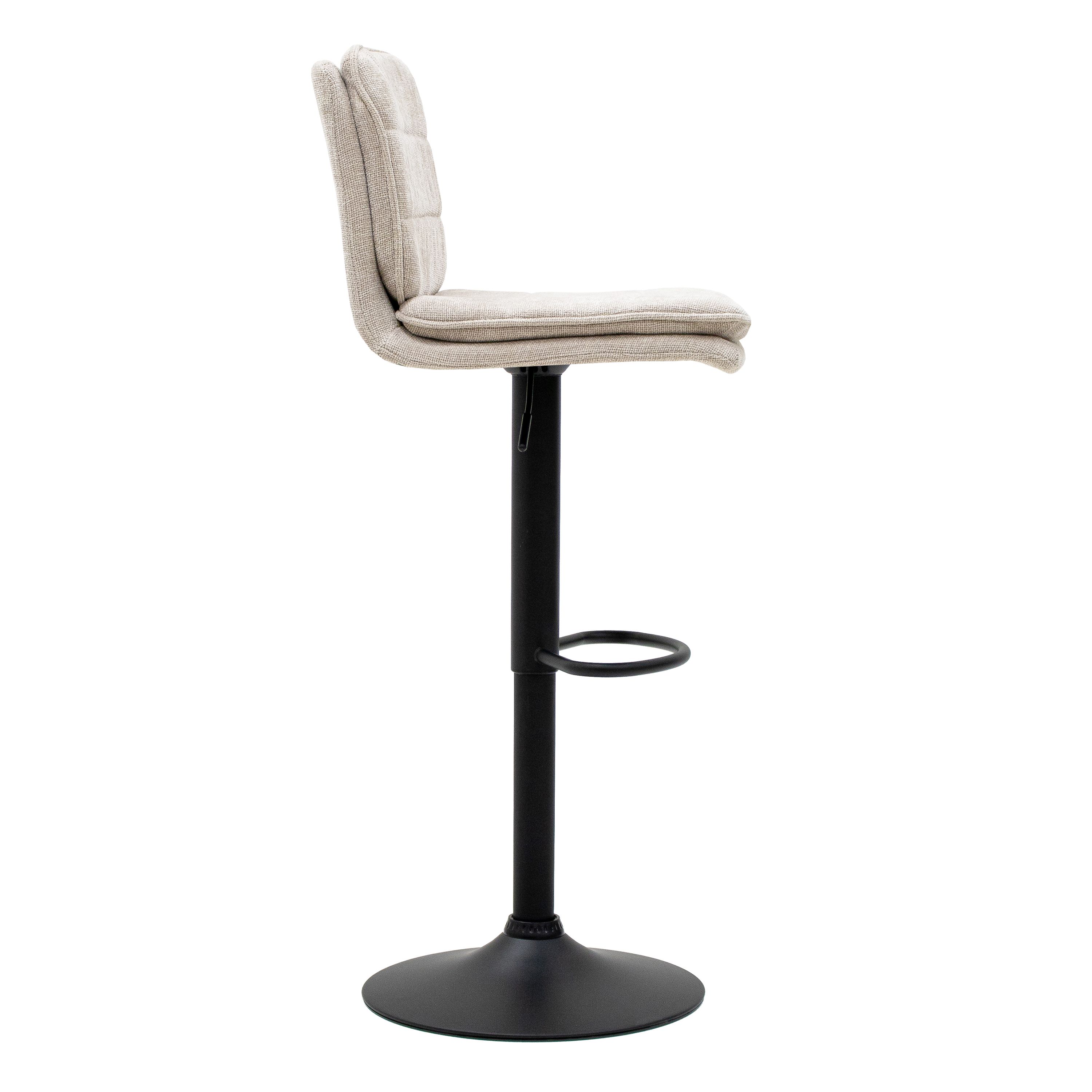 Maak kennis met barkruk Roan! Deze draaibare barkruk straalt stijl en comfort uit. De comfortabele zitting beschikt over een extra zit- en rug kussen met horizontale stiksels en rust op een 360-graden draaibaar frame dat in hoogte verstelbaar is. Dit zorgt ervoor dat de kruk af te stellen is op een ideale hoogte. De zitting is gestoffeerd in een zachte texture stof wat de kruk een echte eyecatcher maakt. Roan is verkrijgbaar in 2 toffe kleuren.