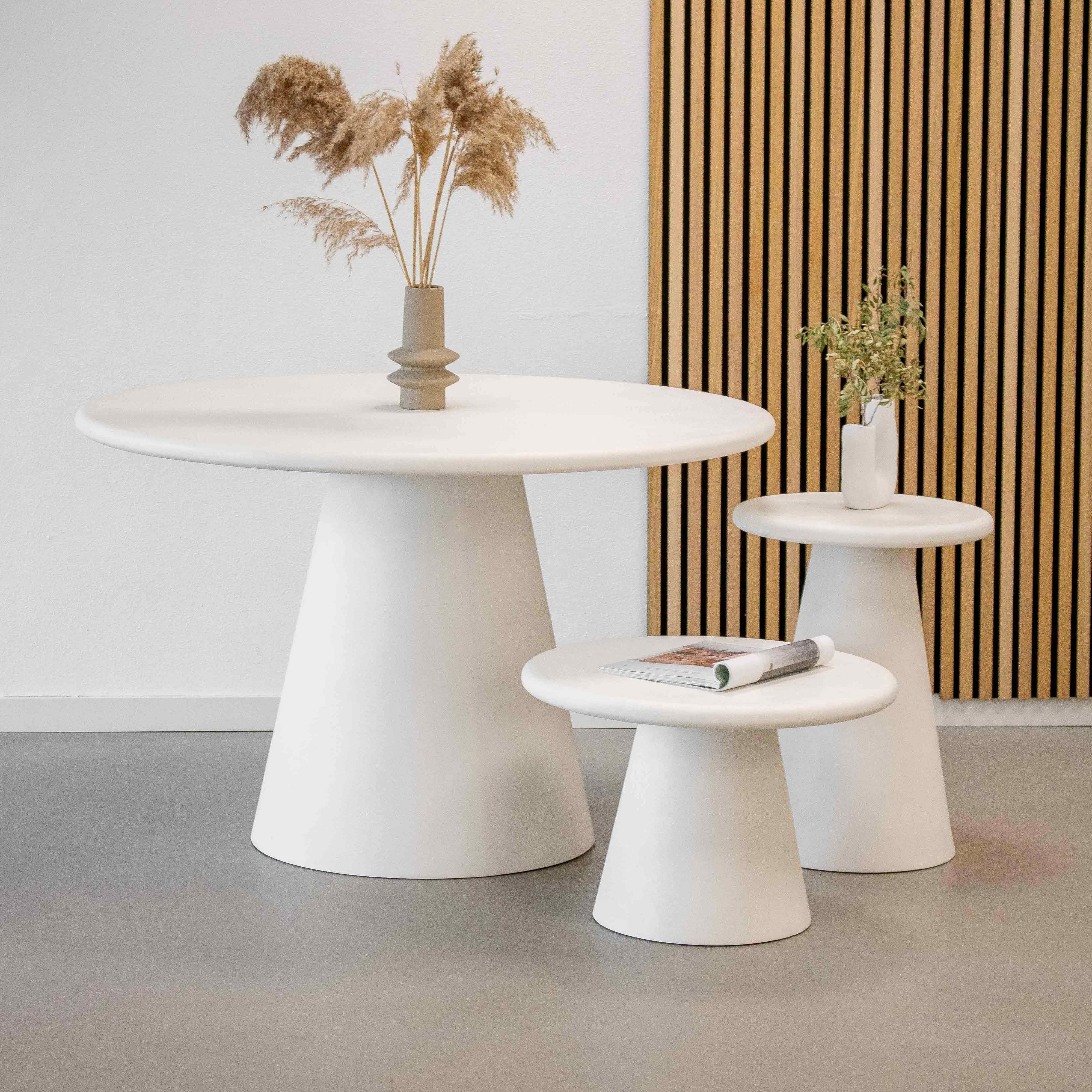Maak kennis met Sil, een compacte maar stijlvolle bijzettafel die elke ruimte verrijkt. Sil heeft elegante ronde vormen en een industriële betonlook. Het houten blad is afgewerkt met een dunne laag beton, wat zorgt voor een unieke uitstraling. Ideaal om een drankje op te zetten of je favoriete boek neer te leggen en echt een stijlvolle toevoeging aan je interieur.