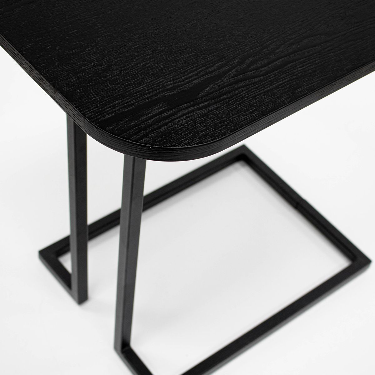Het zwart metalen frame zorgt voor een stoere en strakke uitstraling, terwijl het tafelblad van zwart hout warmte en elegantie toevoegt. Dankzij het slimme ontwerp schuif je Terzo ook gemakkelijk over de zitting van je bank, waardoor hij niet alleen mooi maar ook super praktisch is.