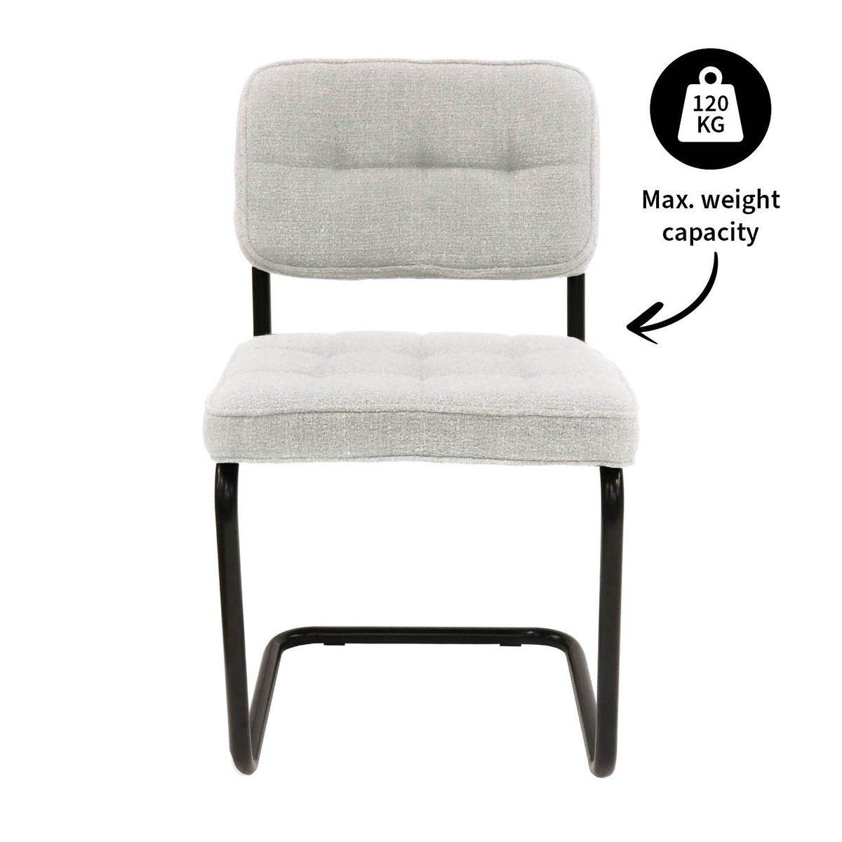 Deze toffe buisframe stoel is onze oude vertrouwde Ivy in een stoer jasje. Door de grove katoenen textuur bekleding heeft YVES de uitstraling waar je naar zoekt. Helemaal Kick! De combinatie van de veerkrachtige zitting en het zwart metalen sledeframe geven deze stoel zijn zitcomfort. Verkrijgbaar in meerdere kleuren dus mix and match voor het ultieme resultaat!