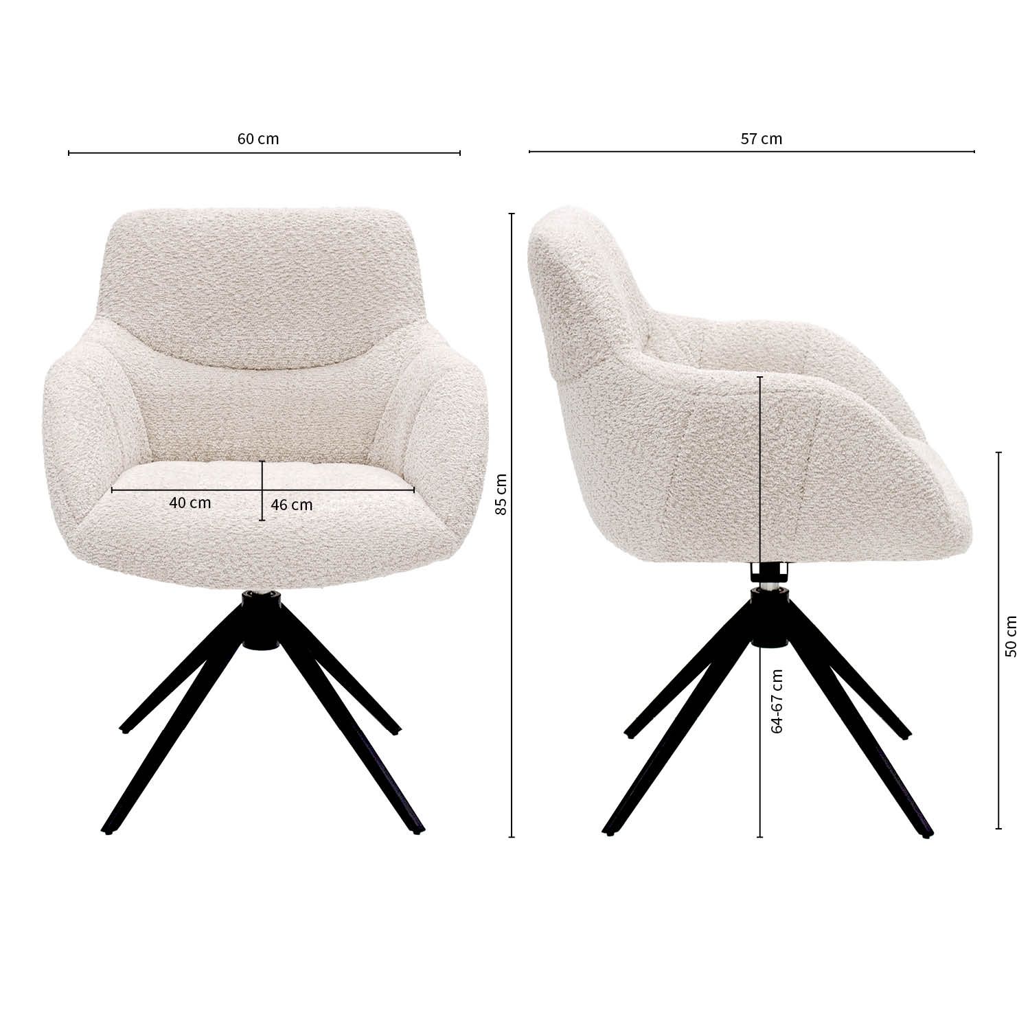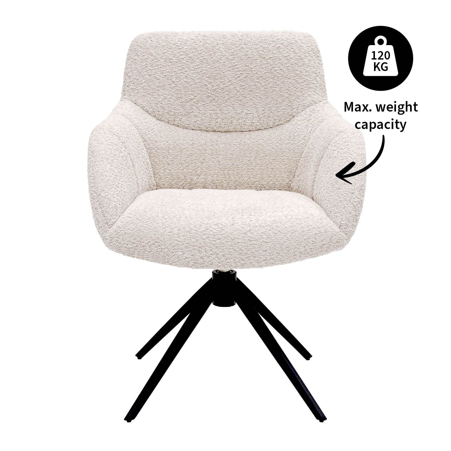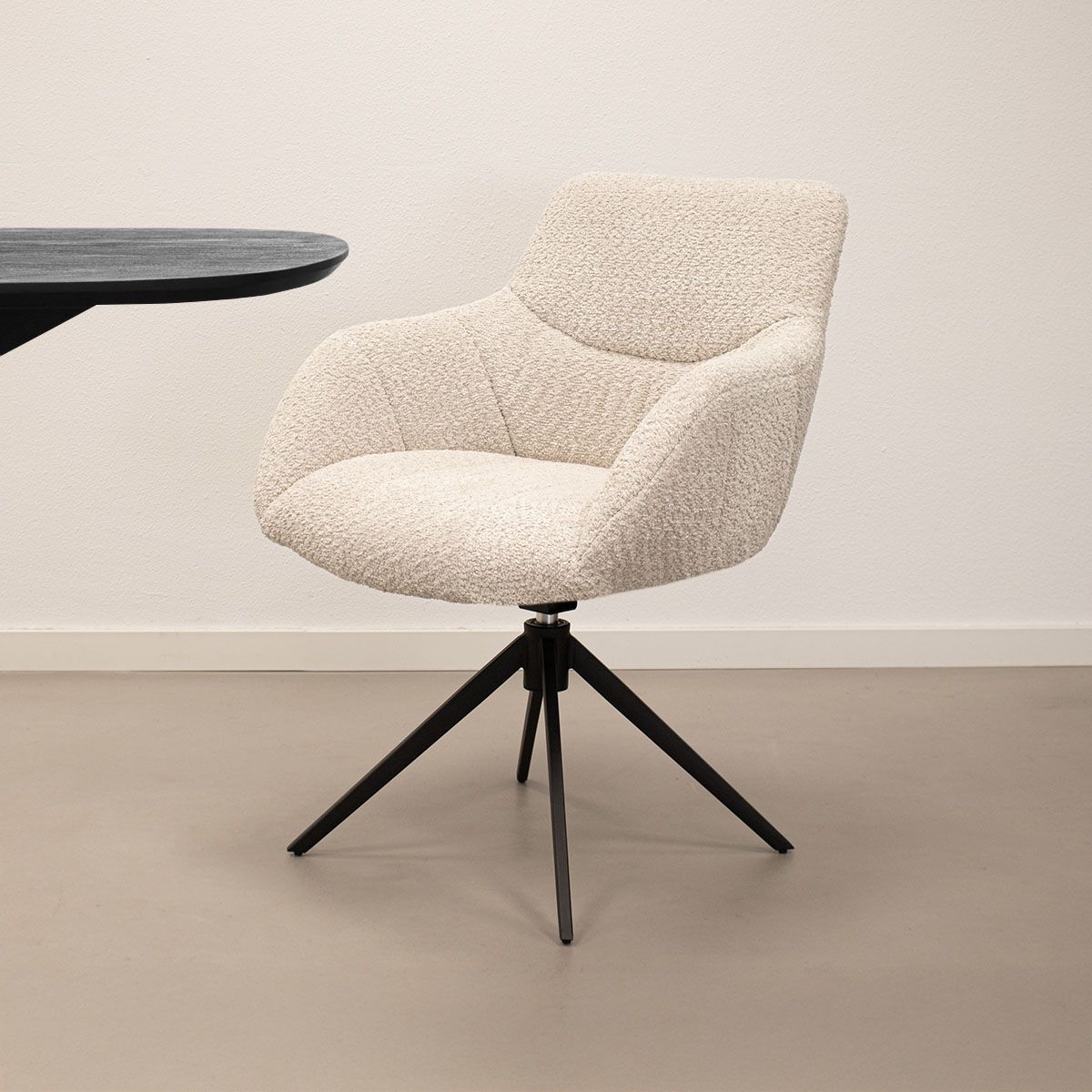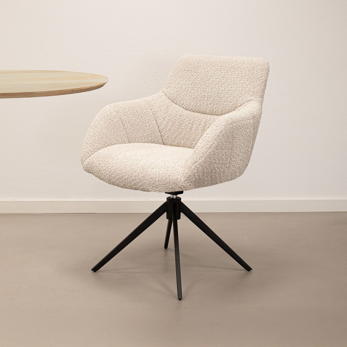 Maak kennis met KICK draaistoel Fer: een ware eyecatcher voor elke eethoek! Fer combineert een luxe uitstraling met hoog zitcomfort en is perfect voor wie houdt van een modern interieur met een speelse twist. Dankzij het stijlvolle stikselpatroon in de zitting en rugleuning krijgt Fer een unieke en elegante look. Het zachte bouclé zorgt niet alleen voor een chique touch, maar staat ook garant voor comfort van hoge kwaliteit.