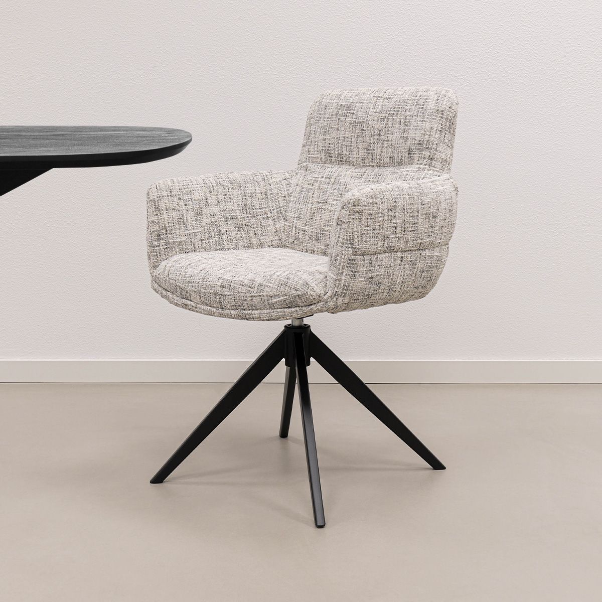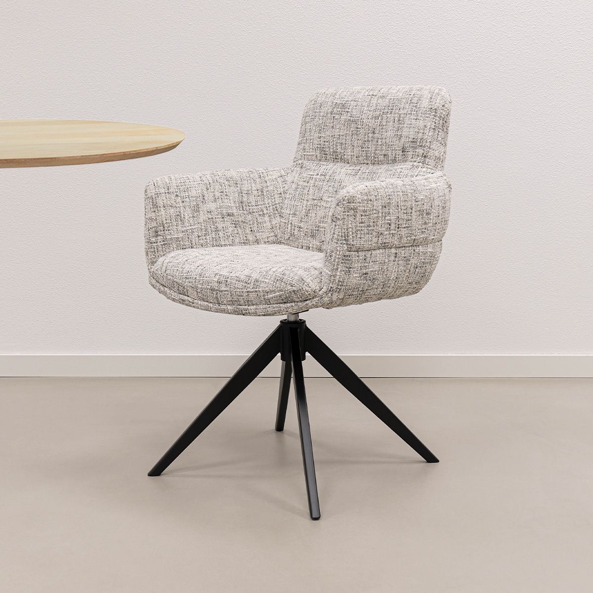 Comfortabel zitten was nog nooit zo stijlvol. KICK draaistoel LIVA combineert een luxe uitstraling met een bijzonder fijne zit. De zachte, gemêleerde textuurstof geeft de stoel een warme en hoogwaardige look en maakt LIVA tot een echte eyecatcher in je eethoek of werkruimte.