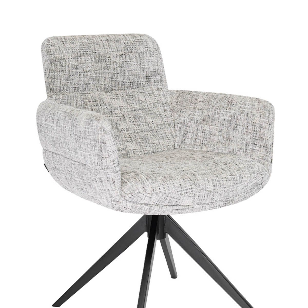 Waarom draaistoel LIVA een musthave is: - Zachte, gemêleerde textuurstof met luxe uitstraling - Volle zitvulling voor optimaal zitcomfort - Comfortabele rugleuning en ondersteunende armleuningen - 360 graden draaibaar onderstel met automatische terugdraaifunctie - Stevig zwart metalen onderstel - Verkrijgbaar in 2 stijlvolle kleuren