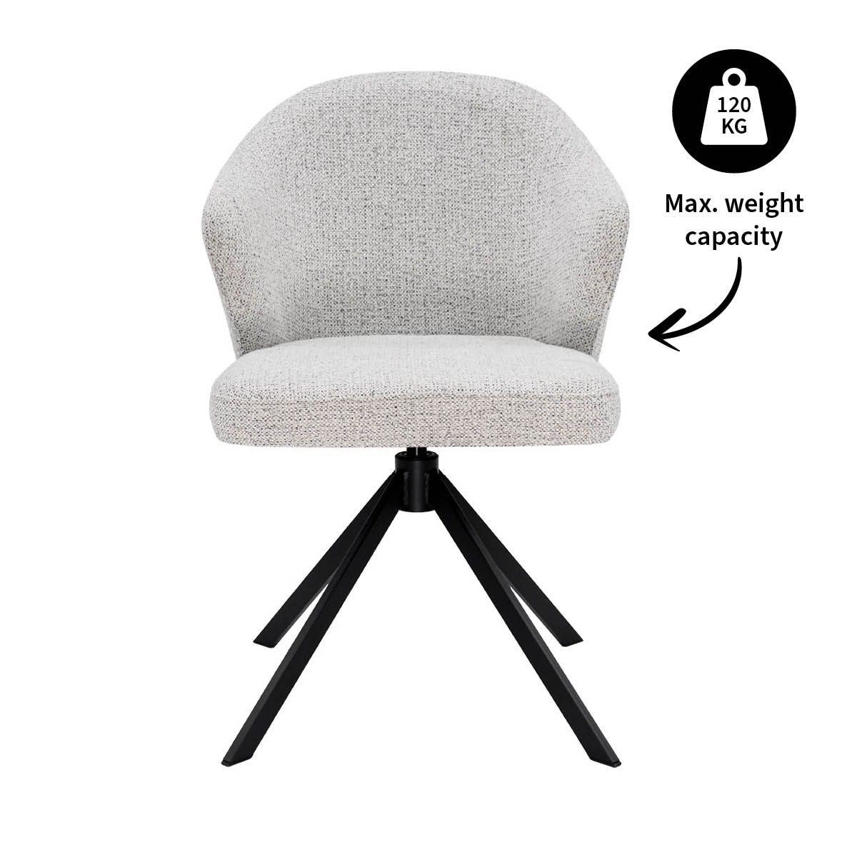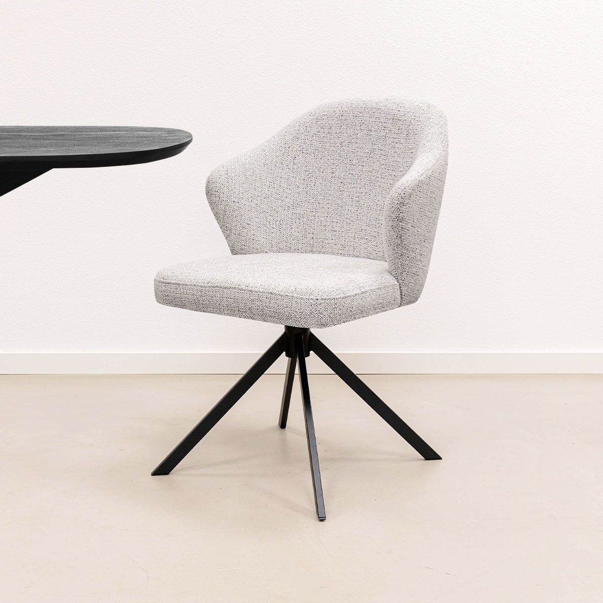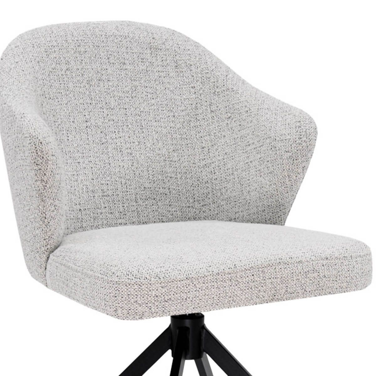 Waarom draaistoel LIZ een musthave is: - Uniek design met driehoekige armleuningen - Gemêleerde textuurstof voor een zachte en luxe uitstraling - 360 graden draaibaar onderstel met terugdraaifunctie - Comfortabele, ondersteunende kuipvorm - Verkrijgbaar in diverse trendy kleuren