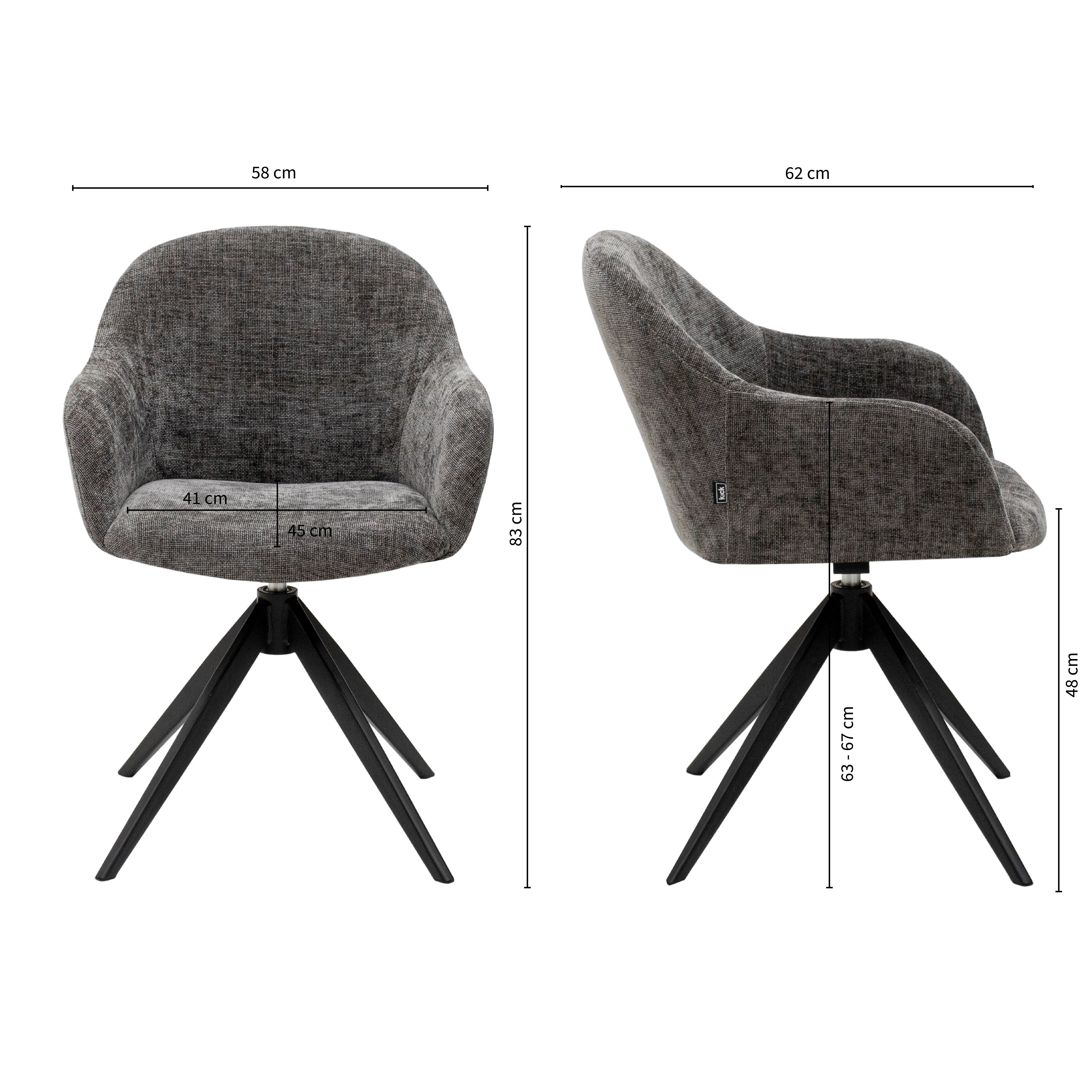 Afmetingen: - D 62 cm x B 58 cm x H 83 cm - Zithoogte: 48 cm