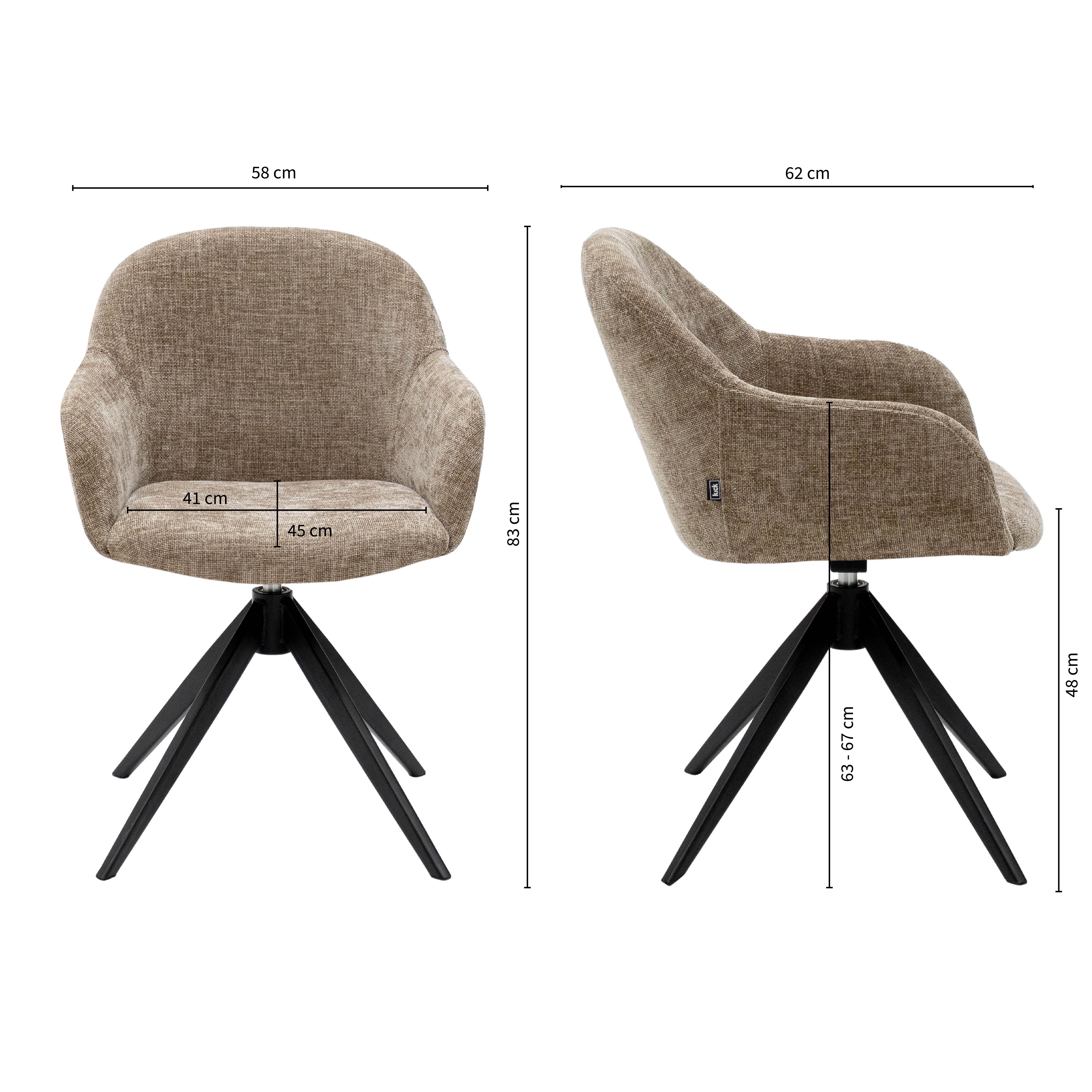 Afmetingen: - D 62 cm x B 58 cm x H 83 cm - Zithoogte: 48 cm