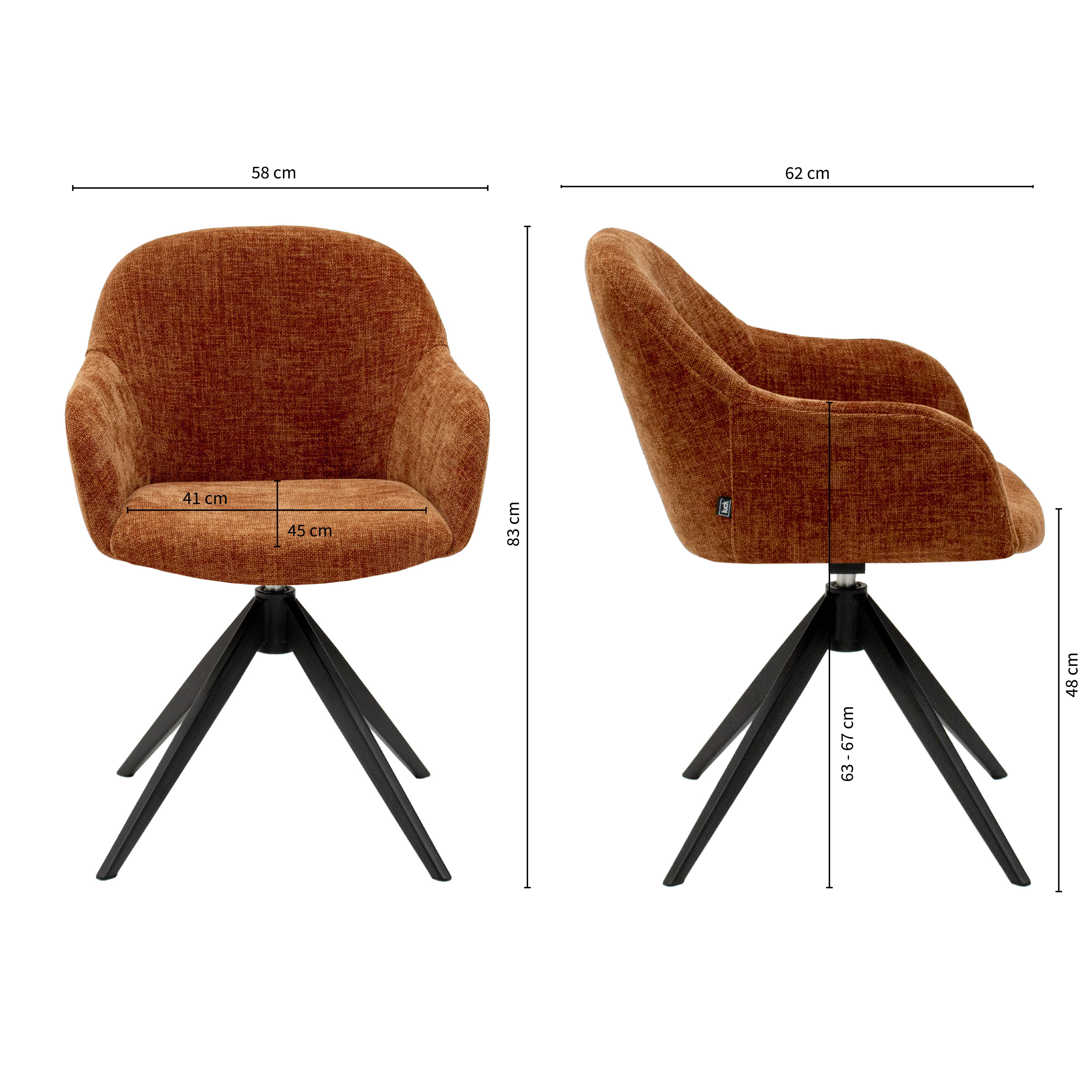 Afmetingen: - D 62 cm x B 58 cm x H 83 cm - Zithoogte: 48 cm