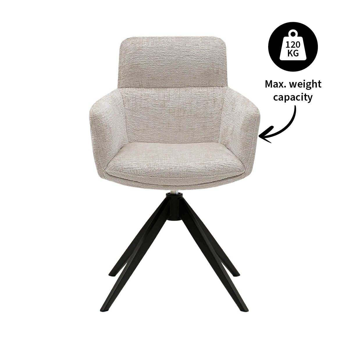 Met zijn zachte, fijngeweven textuurstof en comfortabele zit is NIEK de perfecte mix van luxe en gebruiksgemak. De ronde vormen, armleuningen en rijke vulling zorgen ervoor dat je hier met gemak urenlang in kunt zitten, ideaal voor lange diners of een avondje borrelen.