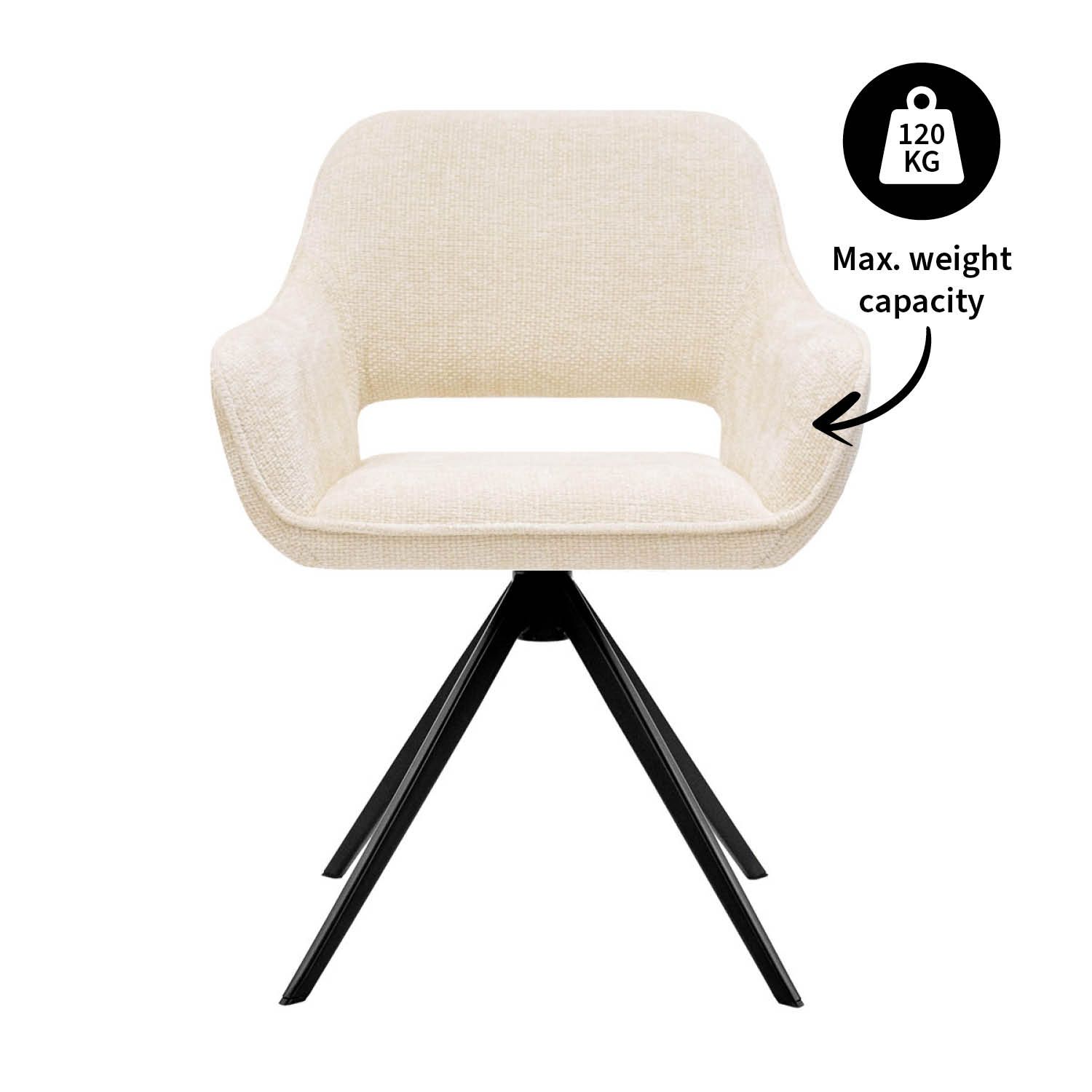 NORI is bekleed met hoogwaardige chenille: een luxe stof met een fluweelzachte touch en subtiele glans. De afgeronde vormen zorgen voor een comfortabele zit, terwijl het 360 graden draaibare onderstel met terugdraaifunctie zorgt voor ultiem gebruiksgemak. Verkrijgbaar in diverse stijlvolle kleuren, passend bij elke woonstijl, van modern tot klassiek.