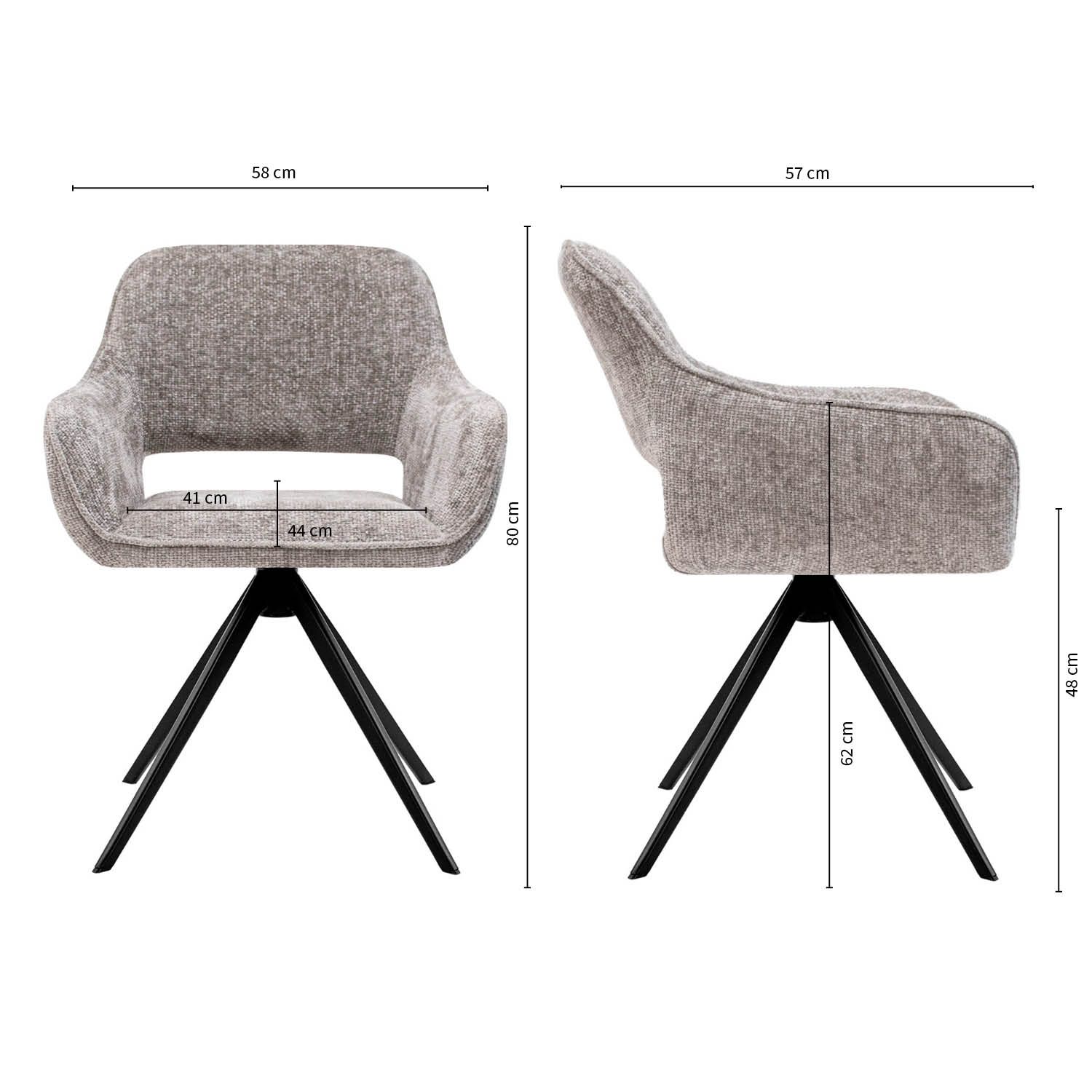 Afmetingen draaistoel NORI: