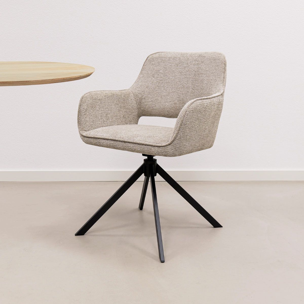 PAX beweegt soepel met je mee dankzij het 360 graden draaibare onderstel met terugdraaifunctie. Superfijn tijdens lange diners of wanneer je thuiswerkt en net wat extra flexibiliteit wilt. De zachte bekleding met subtiele textuur en het uitnodigende ontwerp zorgen voor een comfortabele zit én een gezellige, warme uitstraling. En natuurlijk: ook PAX is in meerdere kleuren verkrijgbaar, zodat jij altijd de perfecte match voor jouw interieur vindt.
