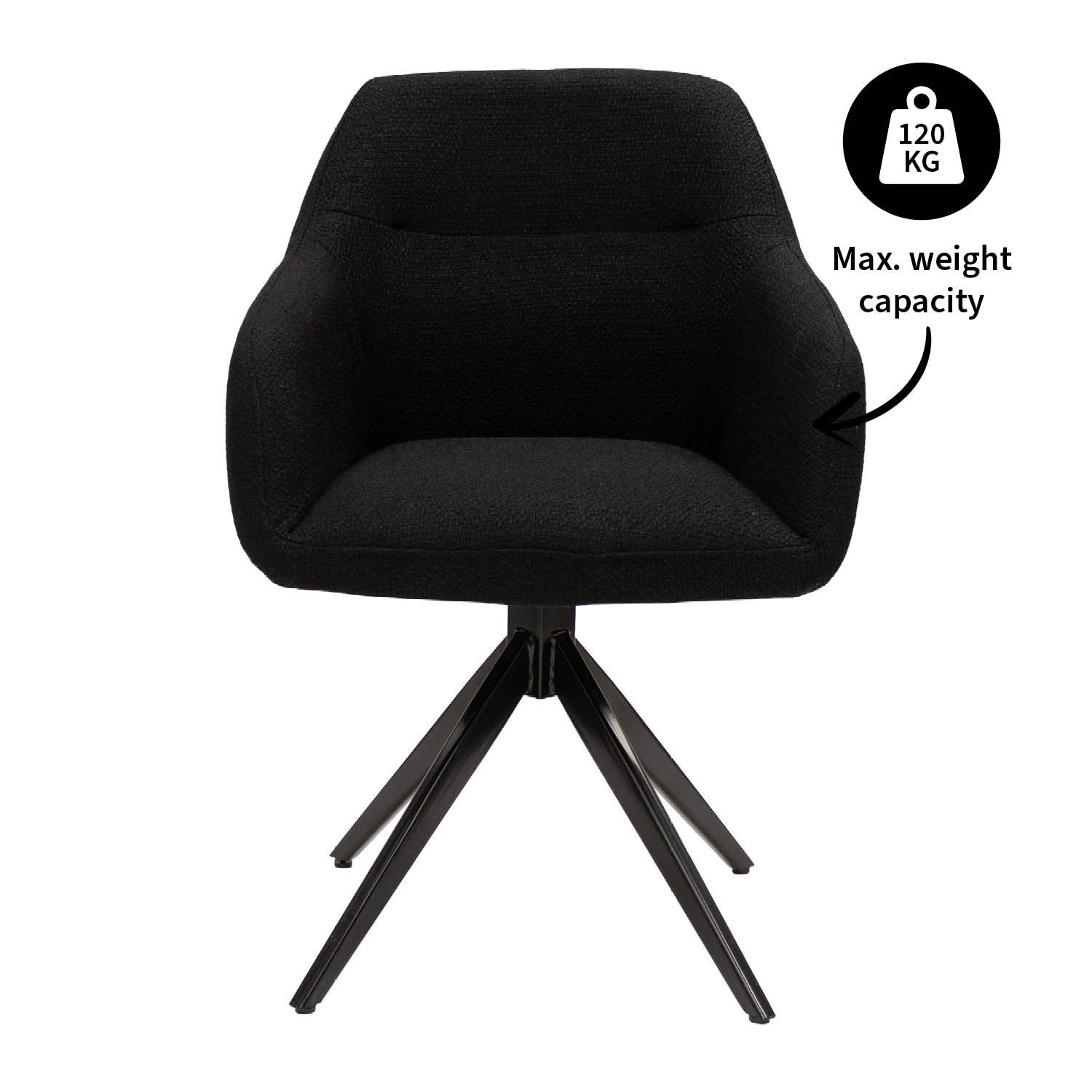 Op zoek naar een eetkamerstoel die comfort, design én functionaliteit combineert? Dan is KICK draaistoel RAVI jouw perfecte match. Deze moderne draaistoel straalt klasse uit met zijn grove textuurstof en stoere zwarte metalen onderstel. Dankzij het handige 180° draaimechanisme geniet je van extra bewegingsvrijheid, ideaal tijdens lange diners of gezellige avonden aan tafel.
