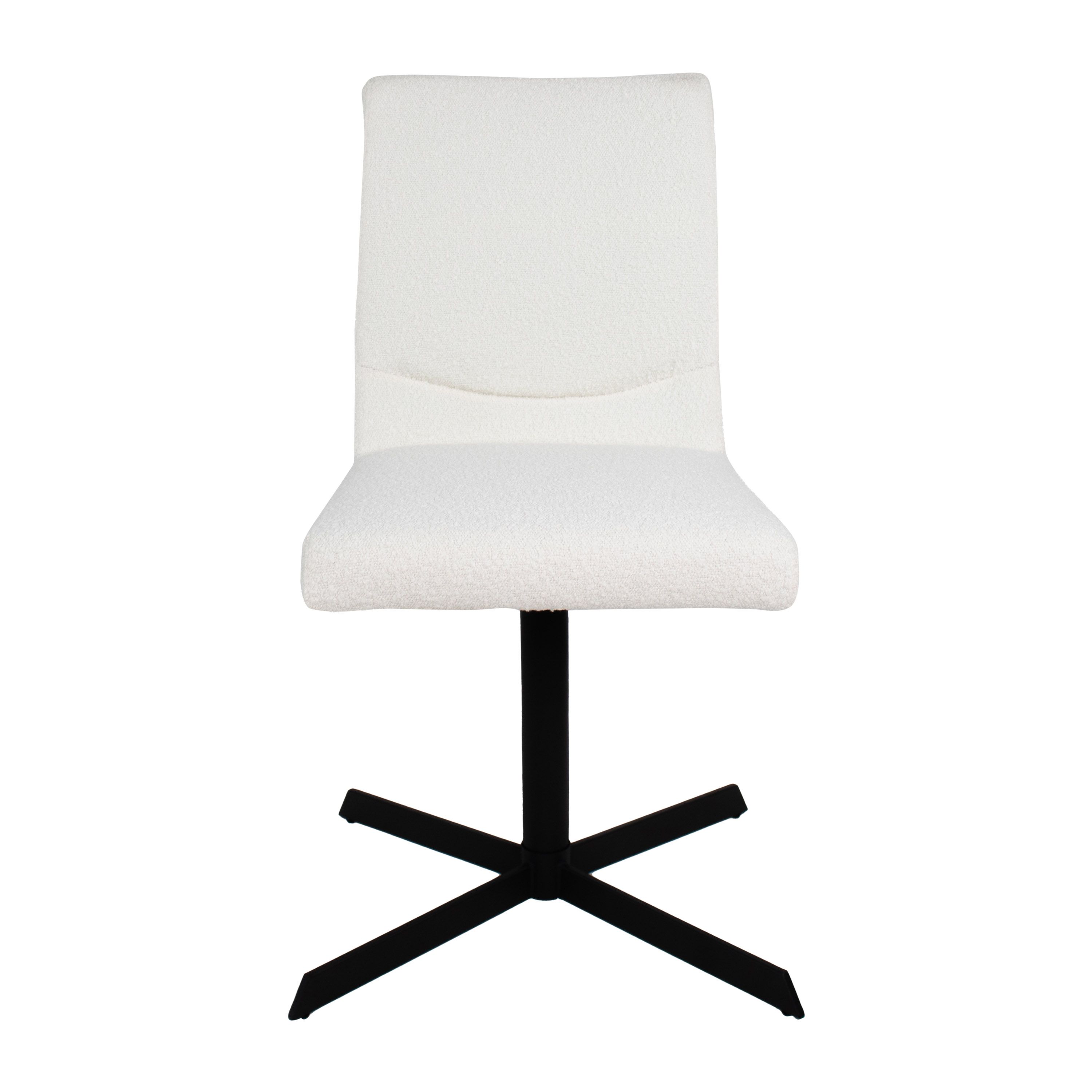 Sam is gehuld in een zachte bouclé stof en verkrijgbaar in diverse kleuren. Het opvallende metalen frame van de stoel is een staaltje van modern design en functionaliteit. Het frame is voorzien van een 360-graden draaimechanisme, waardoor je soepel kunt bewegen en gemakkelijk kunt aanschuiven aan de eettafel of een gesprek kunt voeren zonder de stoel te verschuiven.
