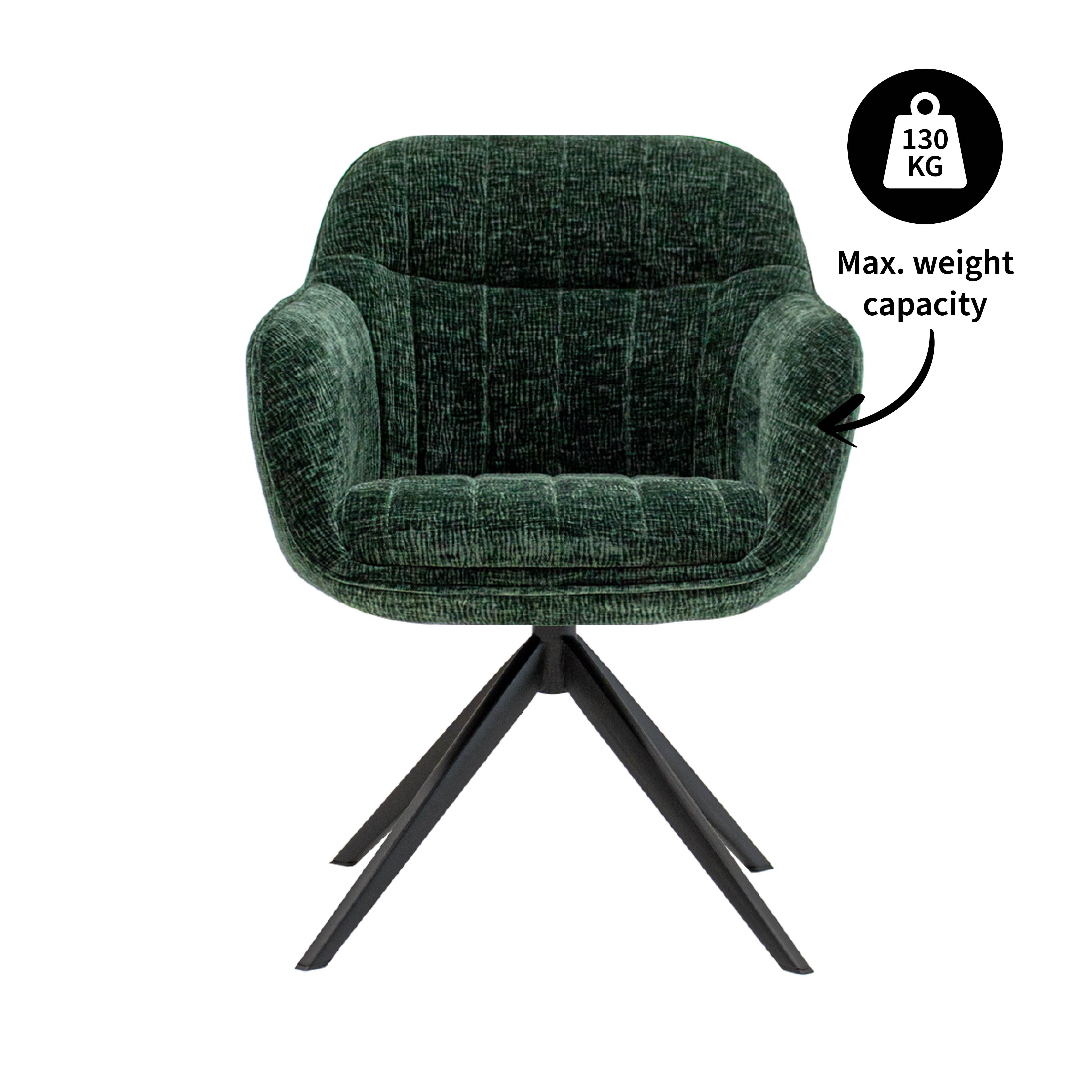 STAN is bekleed met een luxe velvet stof, geïnspireerd op wildlife prints met een chique twist. De zachte zitting met armleuningen biedt ultiem comfort en staat op een stevig 360 graden draaibaar onderstel. Of je nu dineert, werkt of ontspant – met STAN draai je letterlijk alle kanten op. Kies uit vier stijlvolle kleuren en mix & match jouw perfecte set.