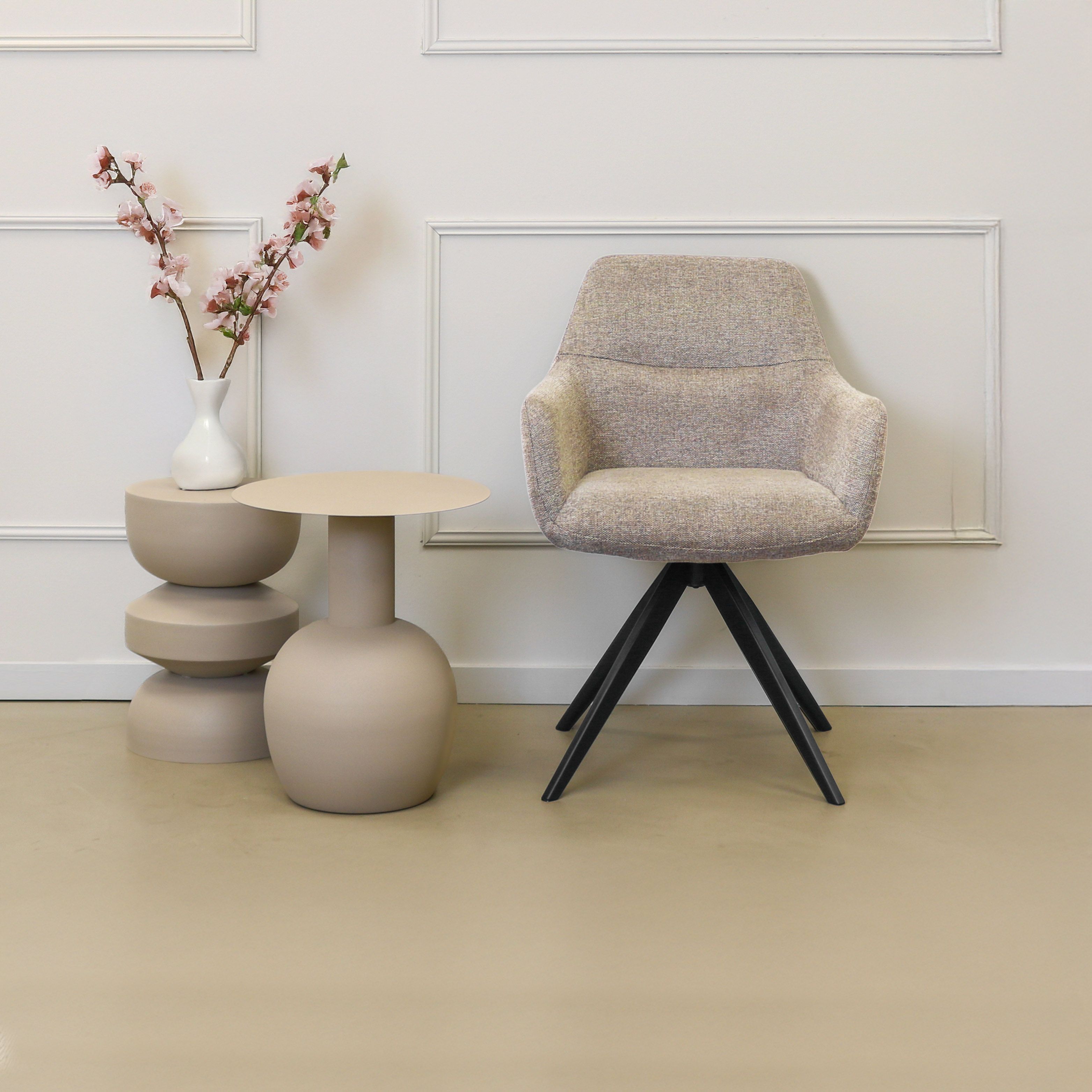 TOM is de ideale draaistoel voor iedereen die comfort en stijl belangrijk vindt. Met zijn 360 graden draaibare onderstel biedt deze draaibare eetkamerstoel ultiem gebruiksgemak: schuif eenvoudig van en aan tafel zonder je stoel te hoeven verschuiven. Dankzij de comfortabele zitting en armleuningen geniet je moeiteloos van lange diners, gezellige borrels of een productieve werkdag.