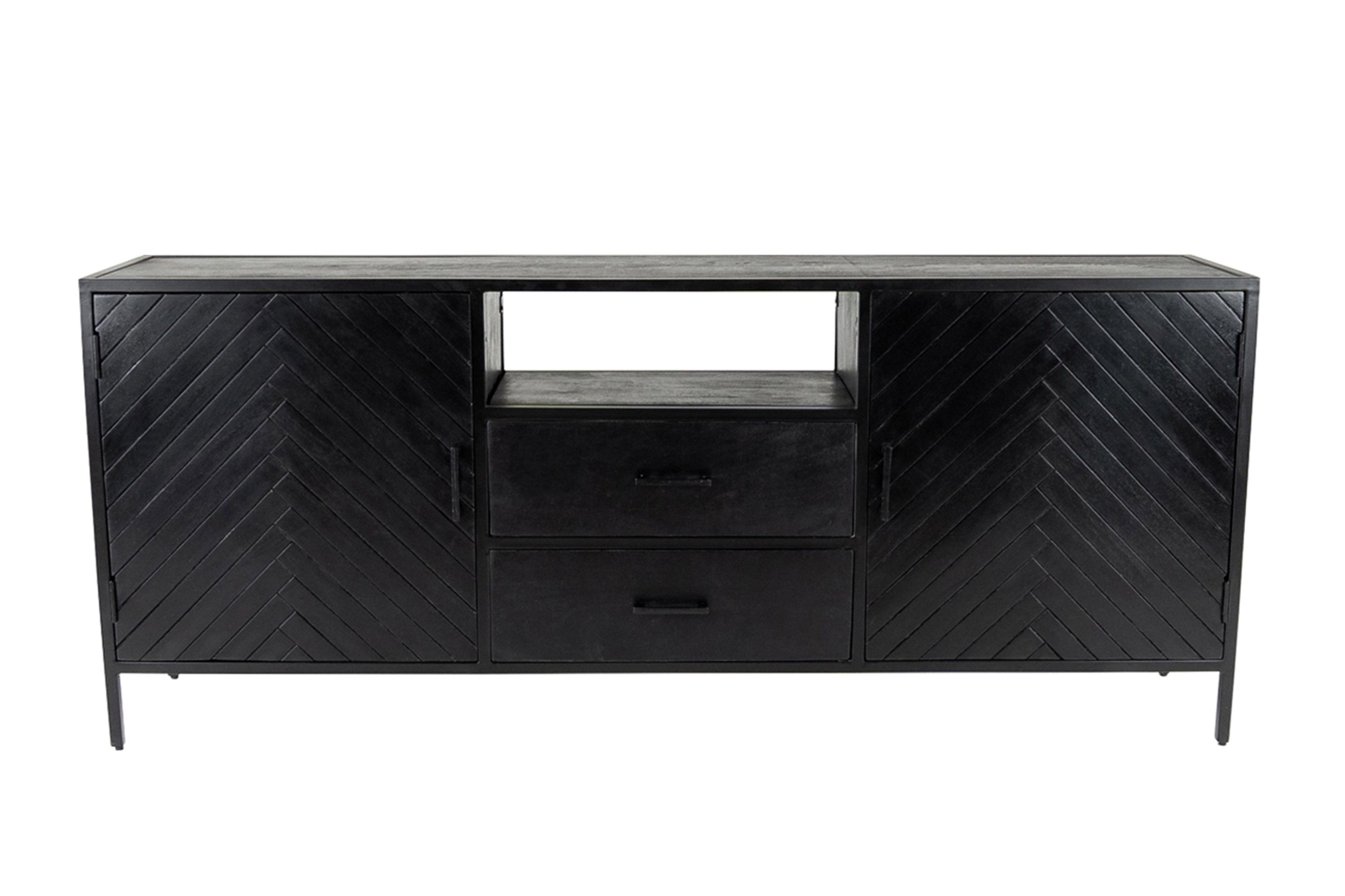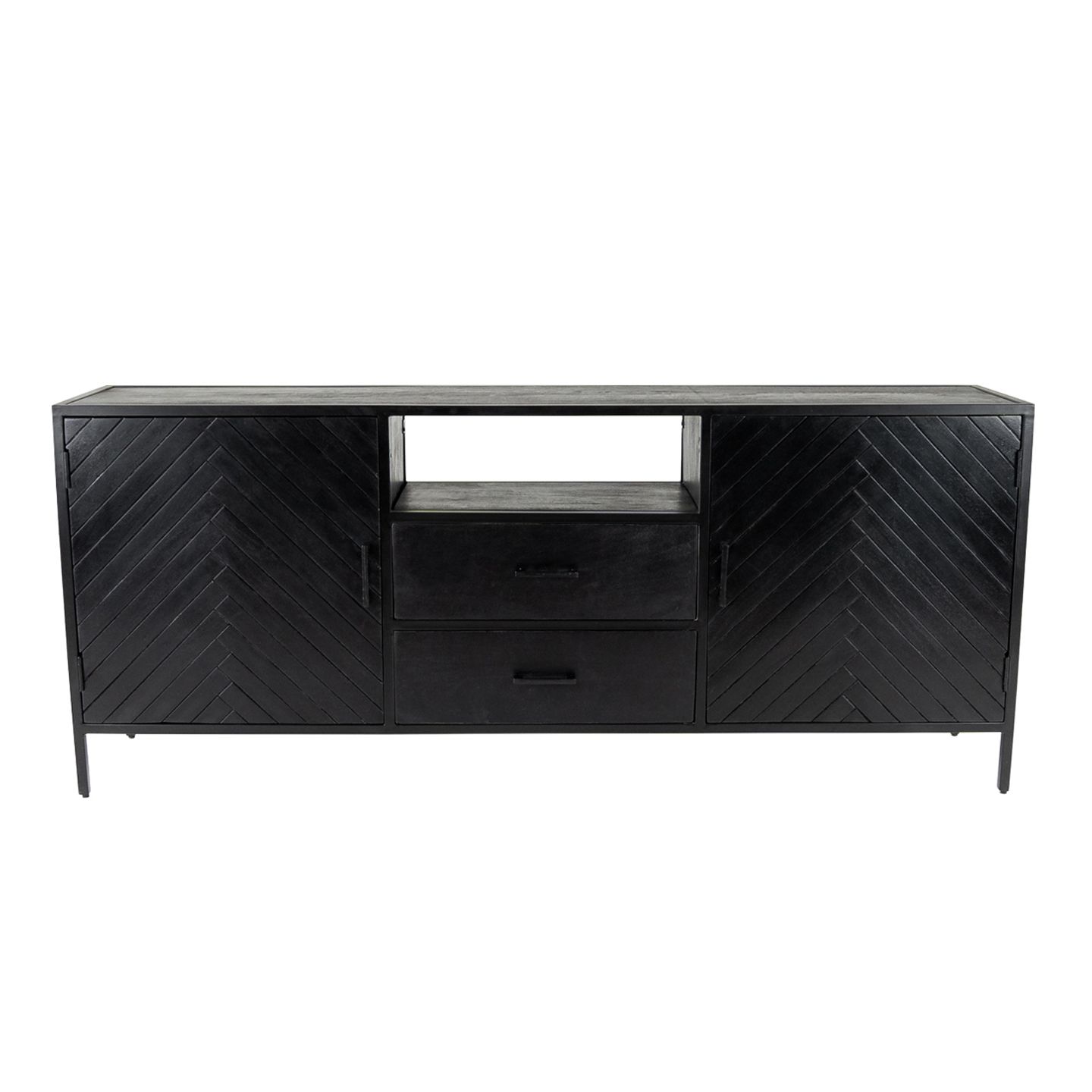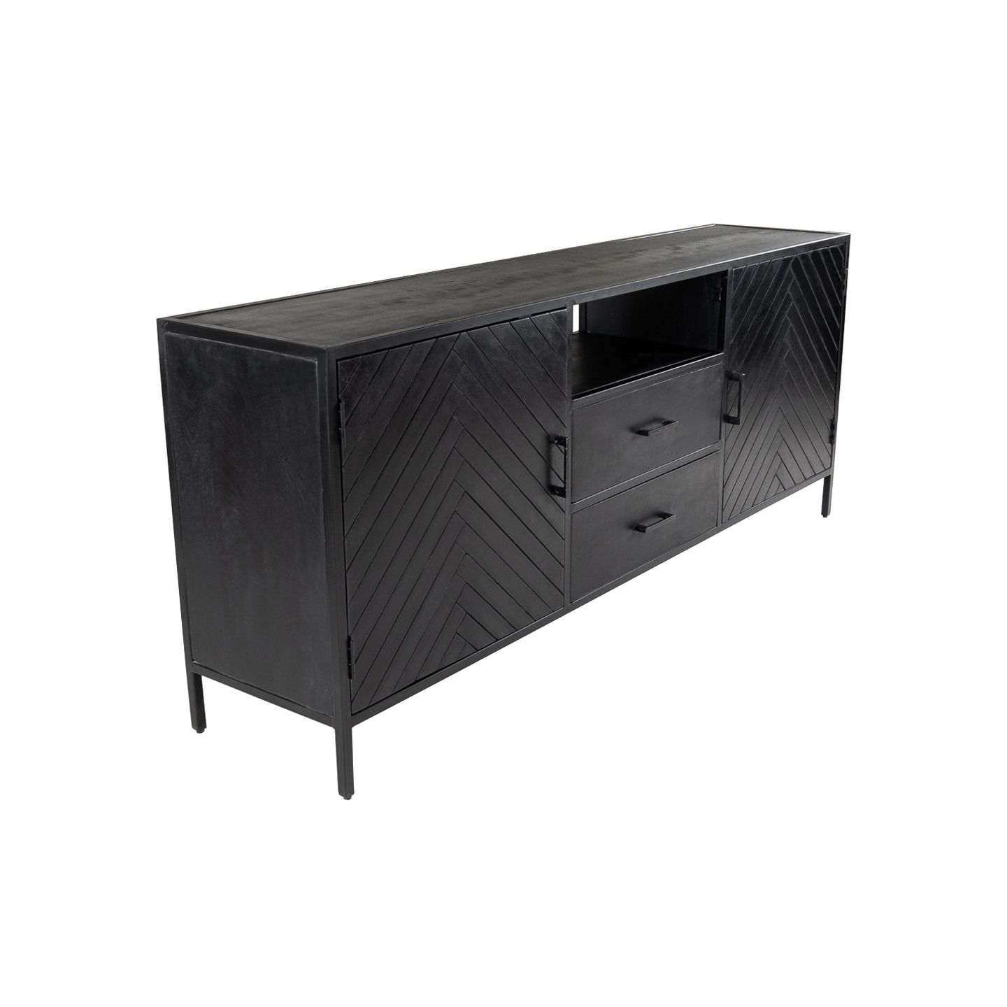 SAY HI TO HUGO! Het stoere industriële dressoir uit de HUGO serie van Kick. De zwarte stalen poot draagt een mangohouten blad waarvan de deurtjes zijn afgewerkt met visgraatinleg. Dit dressoir houdt uw interieur strak en netjes met de voldoende opbergmogelijkheden die het te bieden heeft. Perfect te combineren met andere items uit de HUGO serie, mix & match voor het beste resultaat!