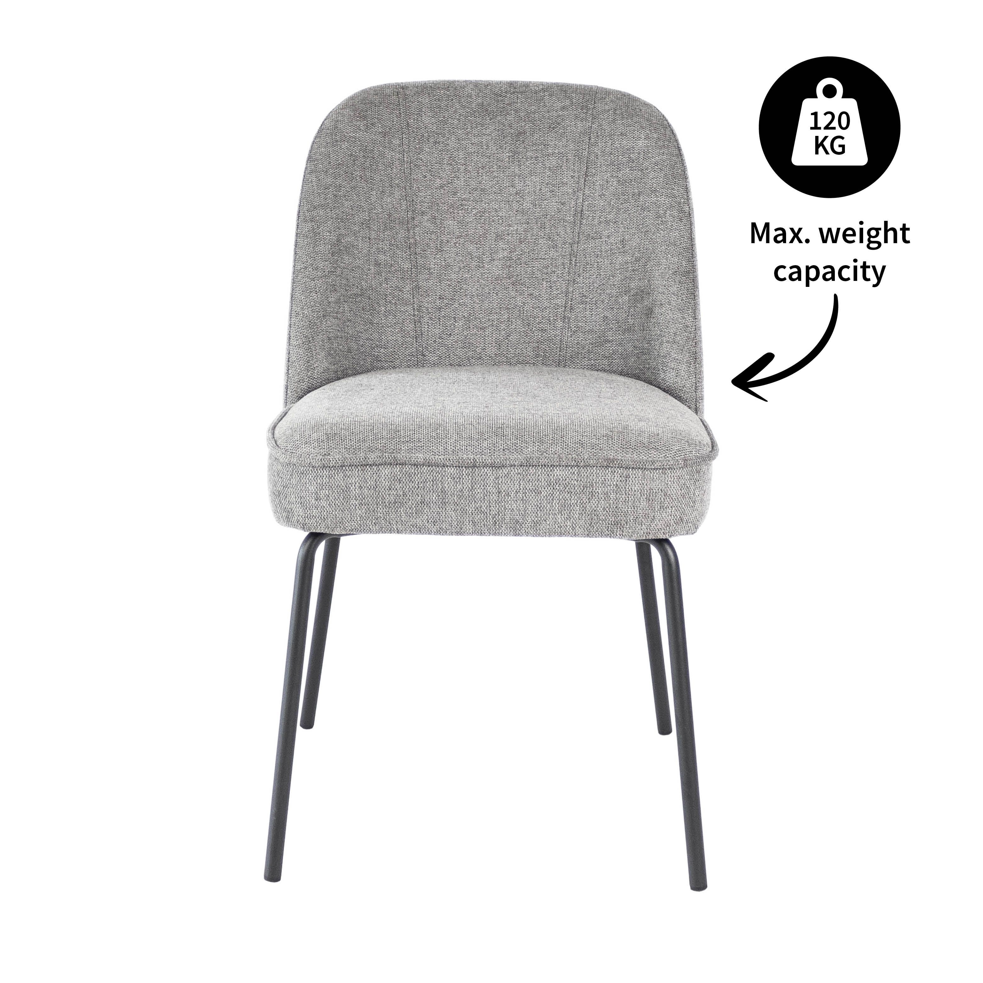 Maak kennis met Eetkamerstoel Britt: waar stijl en comfort samenkomen. Met een ronde rugleuning, rijkelijk gevoerde zitting, bekleding van textuurstof en een strak zwart metalen onderstel straalt Britt elegantie uit. Als extra detail heeft de rugleuning aan de voorzijde 2 decoratieve stiknaden. Verkrijgbaar in verschillende kleuren.