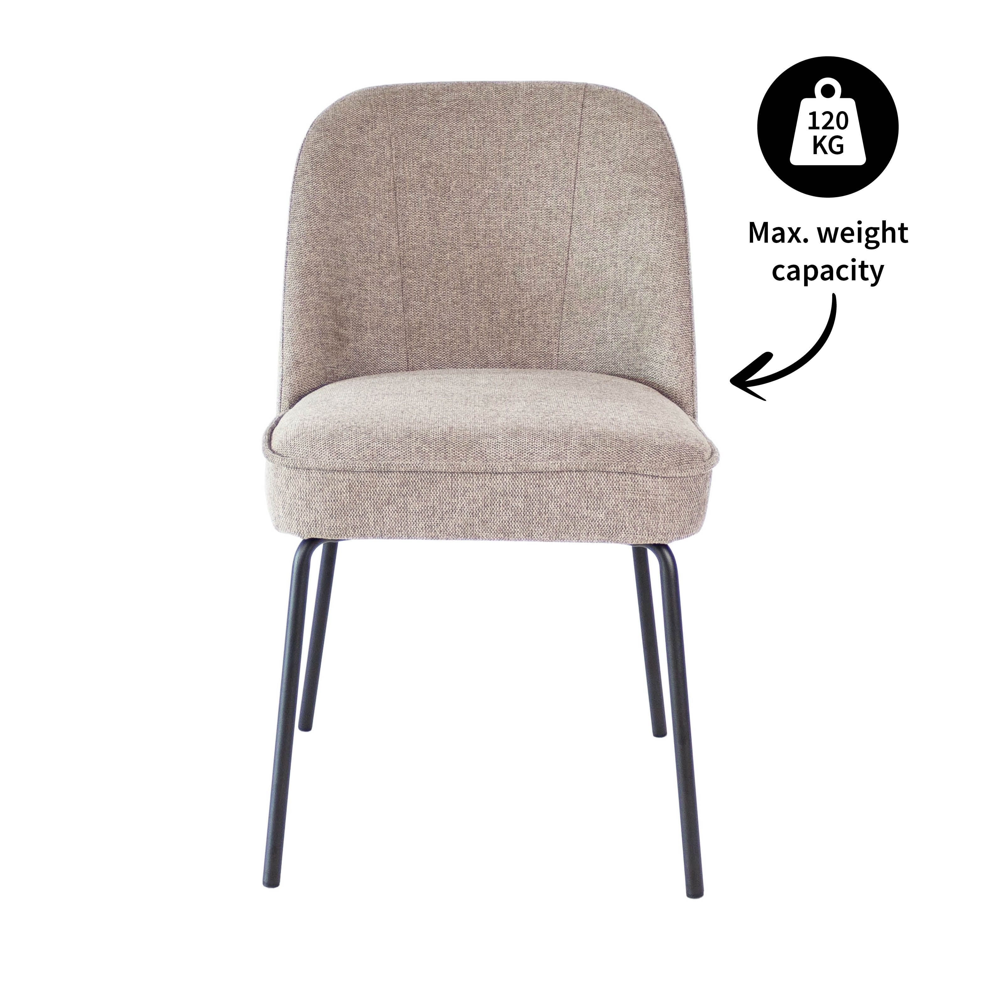 Maak kennis met Eetkamerstoel Britt: waar stijl en comfort samenkomen. Met een ronde rugleuning, rijkelijk gevoerde zitting, bekleding van textuurstof en een strak zwart metalen onderstel straalt Britt elegantie uit. Als extra detail heeft de rugleuning aan de voorzijde 2 decoratieve stiknaden. Verkrijgbaar in verschillende kleuren.