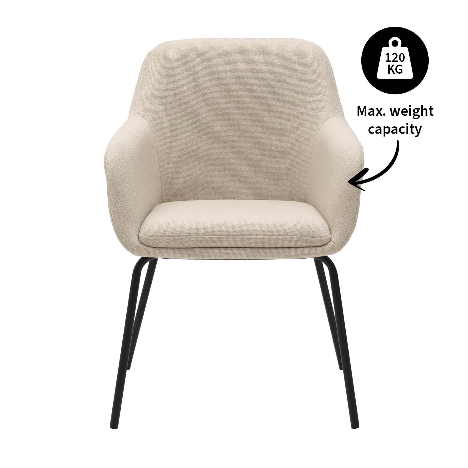 Maak kennis met eetkamerstoel Daan! Daan is het perfecte voorbeeld van strak en minimalisme met een elegant randje. De stoel is gehuld in een fijne texture stof en heeft een warme uitstraling. De zitting beschikt over een comfortabel (vast) zitkussen en goed gepositioneerde armleuningen waardoor de zitervaring optimaal wordt. Het strakke en stevige metalen frame is een verlengde van de zitting en zorgt voor een prachtige visuele eenheid. Daan is verkrijgbaar in 4 toffe kleuren, mix and match voor het ultieme Kick resultaat!