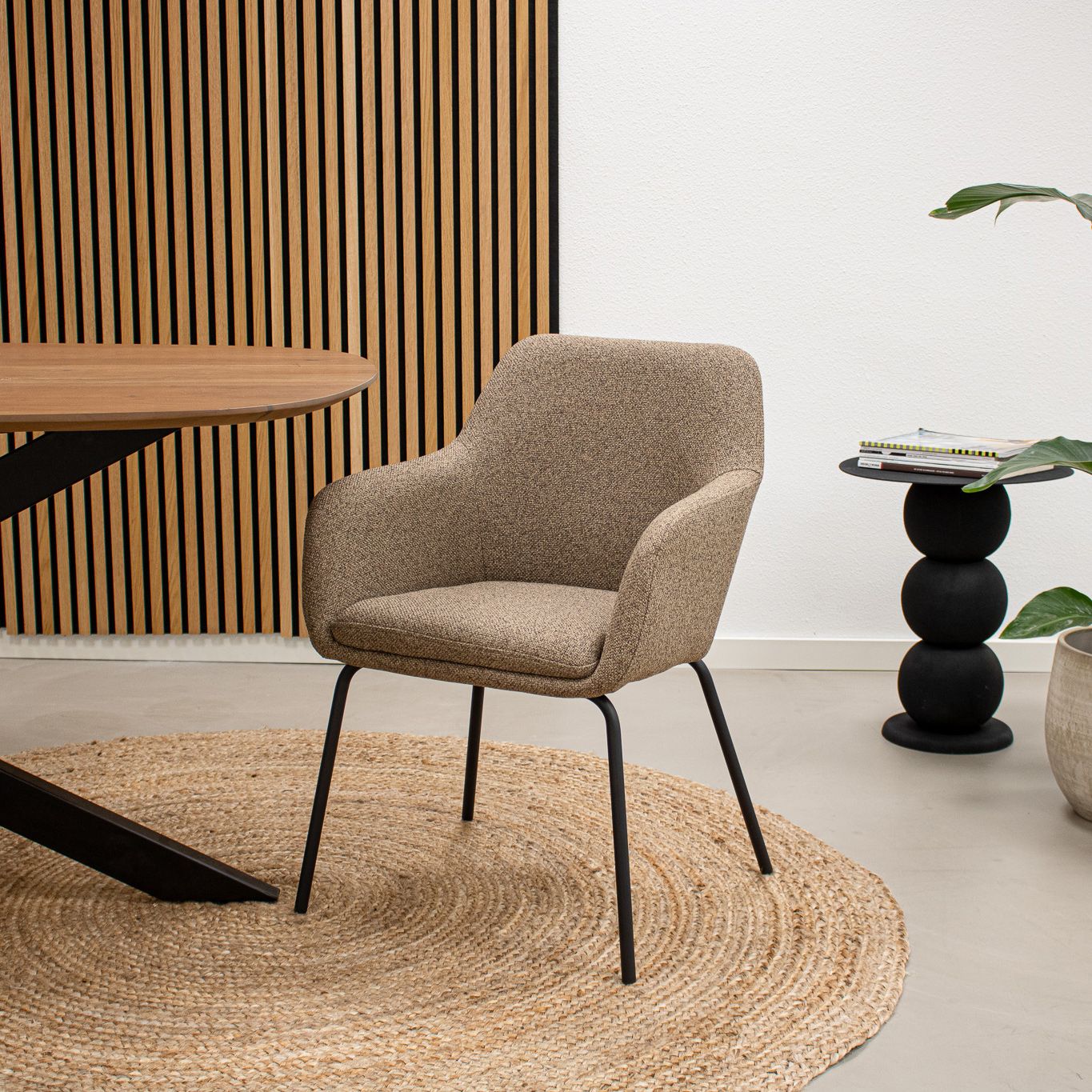 Maak kennis met eetkamerstoel Daan! Daan is het perfecte voorbeeld van strak en minimalisme met een elegant randje. De stoel is gehuld in een fijne texture stof en heeft een warme uitstraling. De zitting beschikt over een comfortabel (vast) zitkussen en goed gepositioneerde armleuningen waardoor de zitervaring optimaal wordt. Het strakke en stevige metalen frame is een verlengde van de zitting en zorgt voor een prachtige visuele eenheid. Daan is verkrijgbaar in 4 toffe kleuren, mix and match voor het ultieme Kick resultaat!