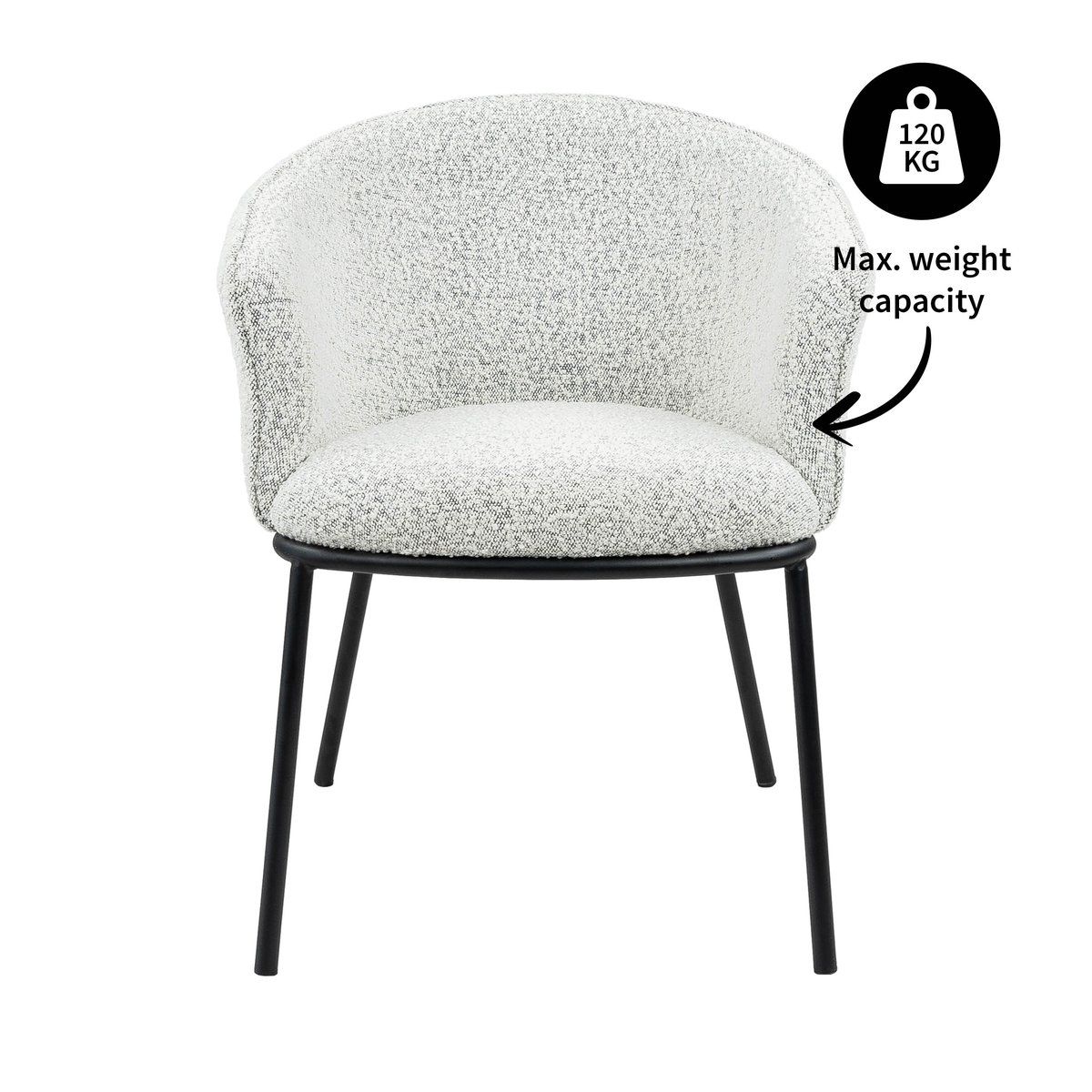 De kick eetkamerstoel DUKE past in ieder interieur, deze unieke stoel is bekleed met een luxe gemêleerde bouclé stof. En in combinatie met het zwarte stalen frame geeft hij jouw interieur de uitstraling die je zoekt. Het zitcomfort heeft Duke te danken aan de goed aansluitende rugleuning en zachte zitting. En daarom is deze toffe stoel uitermate geschikt voor lange gezellige avonden aan tafel. Helemaal kick toch?