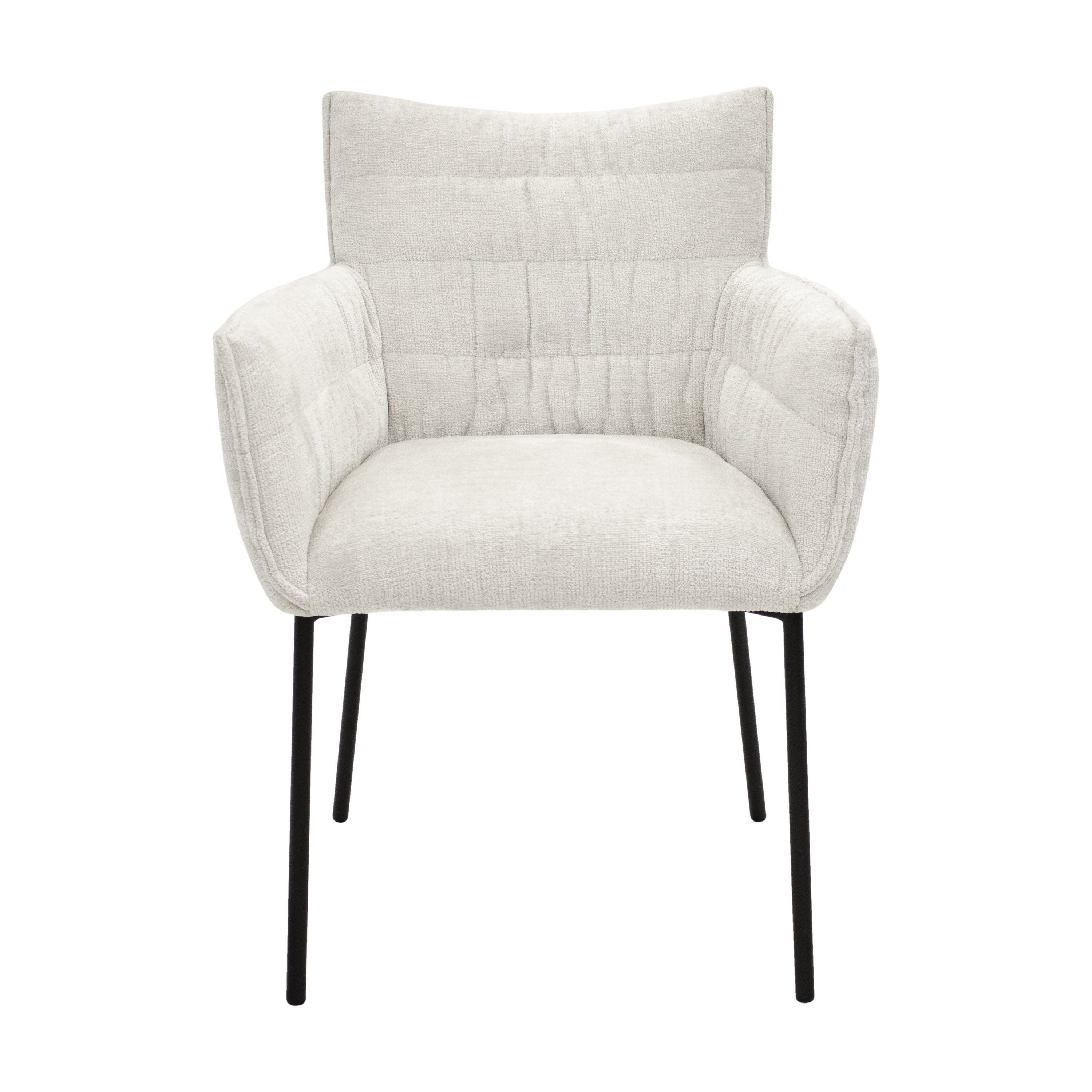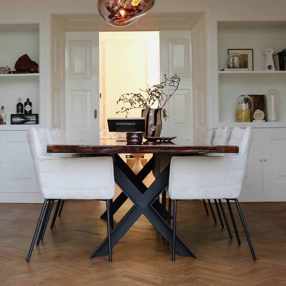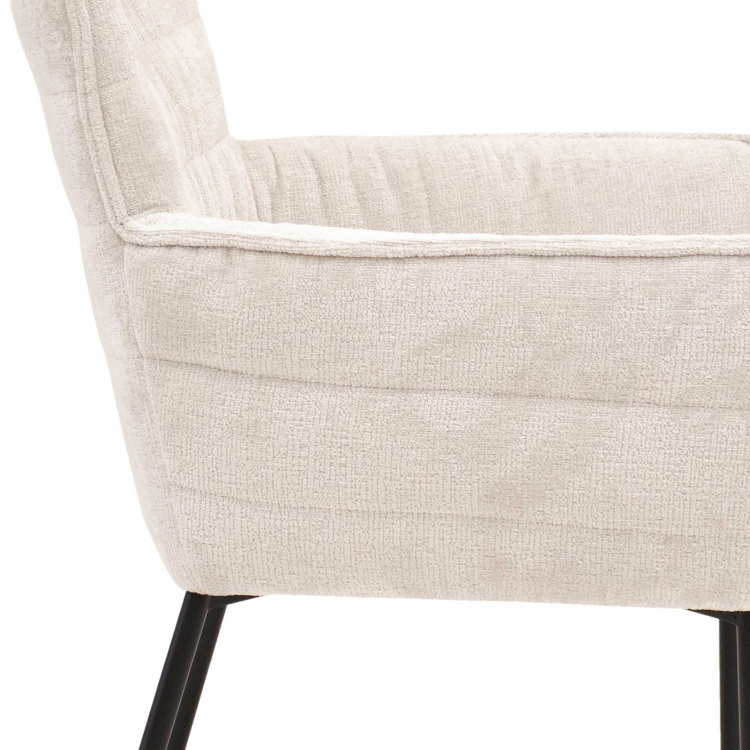 SAY HELLO TO GOOS! GOOS is bekleed met een zachte Chenille-stof, waardoor je kunt genieten van een aangename zitervaring. Chenille is een zachte en pluizige stof die bekend staat om zijn luxueuze uitstraling en textuur. Het frame is gemaakt van metaal en is afgewerkt in een elegante zwarte kleur. Deze veelzijdige eetkamerstoel is verkrijgbaar in diverse kleuren, zodat je de perfecte match kunt vinden met jouw interieur.