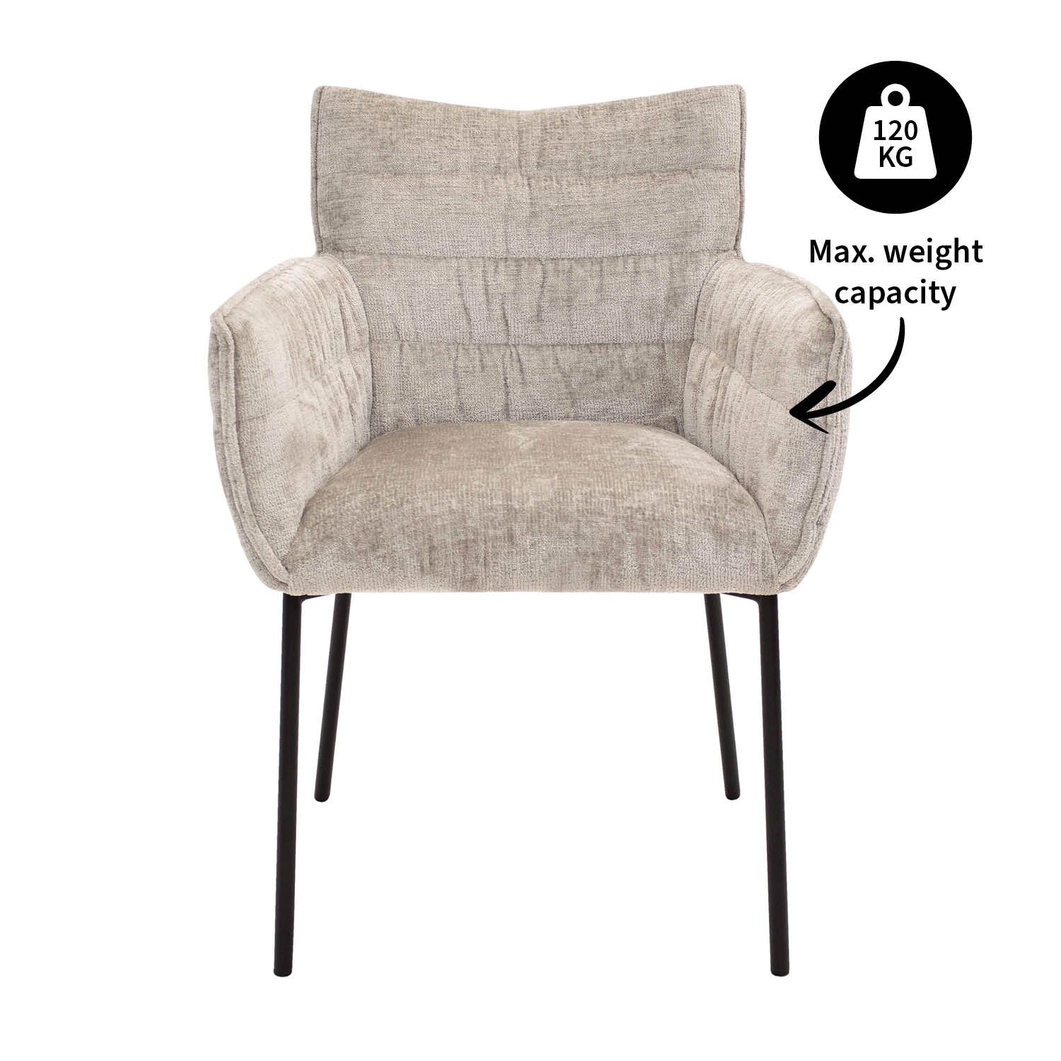SAY HELLO TO GOOS! GOOS is bekleed met een zachte Chenille-stof, waardoor je kunt genieten van een aangename zitervaring. Chenille is een zachte en pluizige stof die bekend staat om zijn luxueuze uitstraling en textuur. Het frame is gemaakt van metaal en is afgewerkt in een elegante zwarte kleur. Deze veelzijdige eetkamerstoel is verkrijgbaar in diverse kleuren, zodat je de perfecte match kunt vinden met jouw interieur.