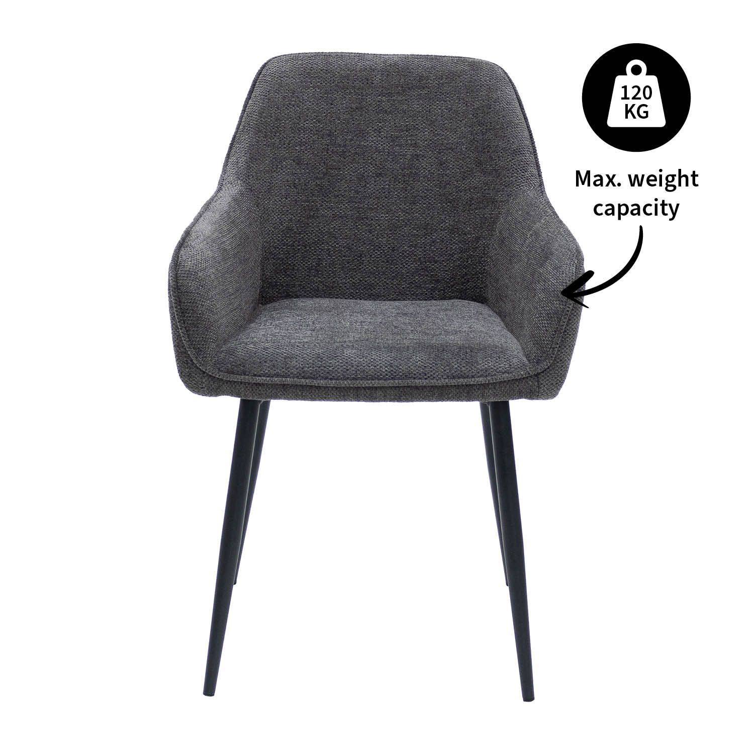 Waarom eetkamerstoel IVAR een musthave is: - Tijdloos design met een moderne twist - Zachte bekleding van hoogwaardige textuurstof - Stevig zwart metalen frame - Comfortabele zitting voor urenlang tafelen - Verkrijgbaar in 4 stijlvolle kleure