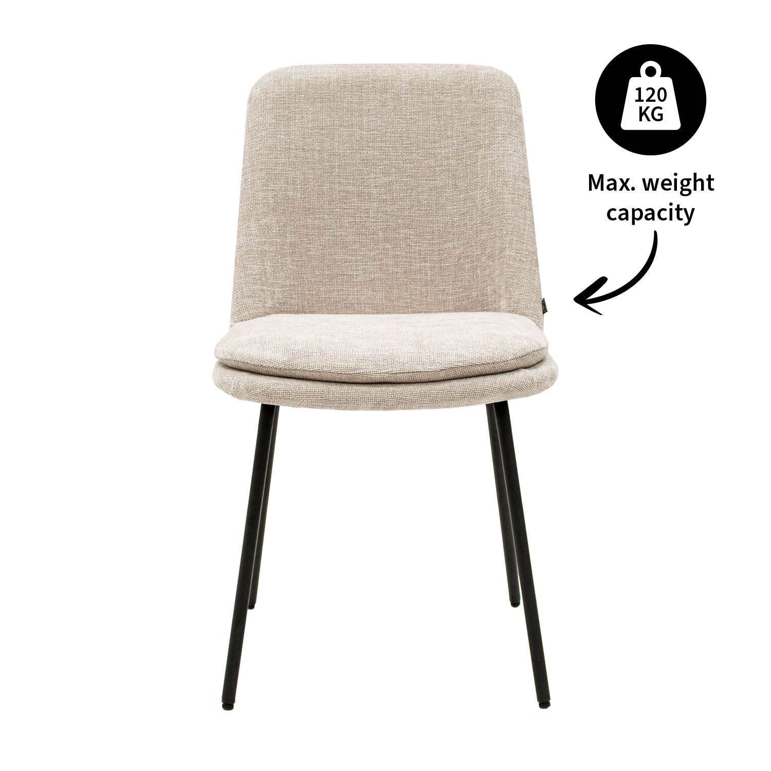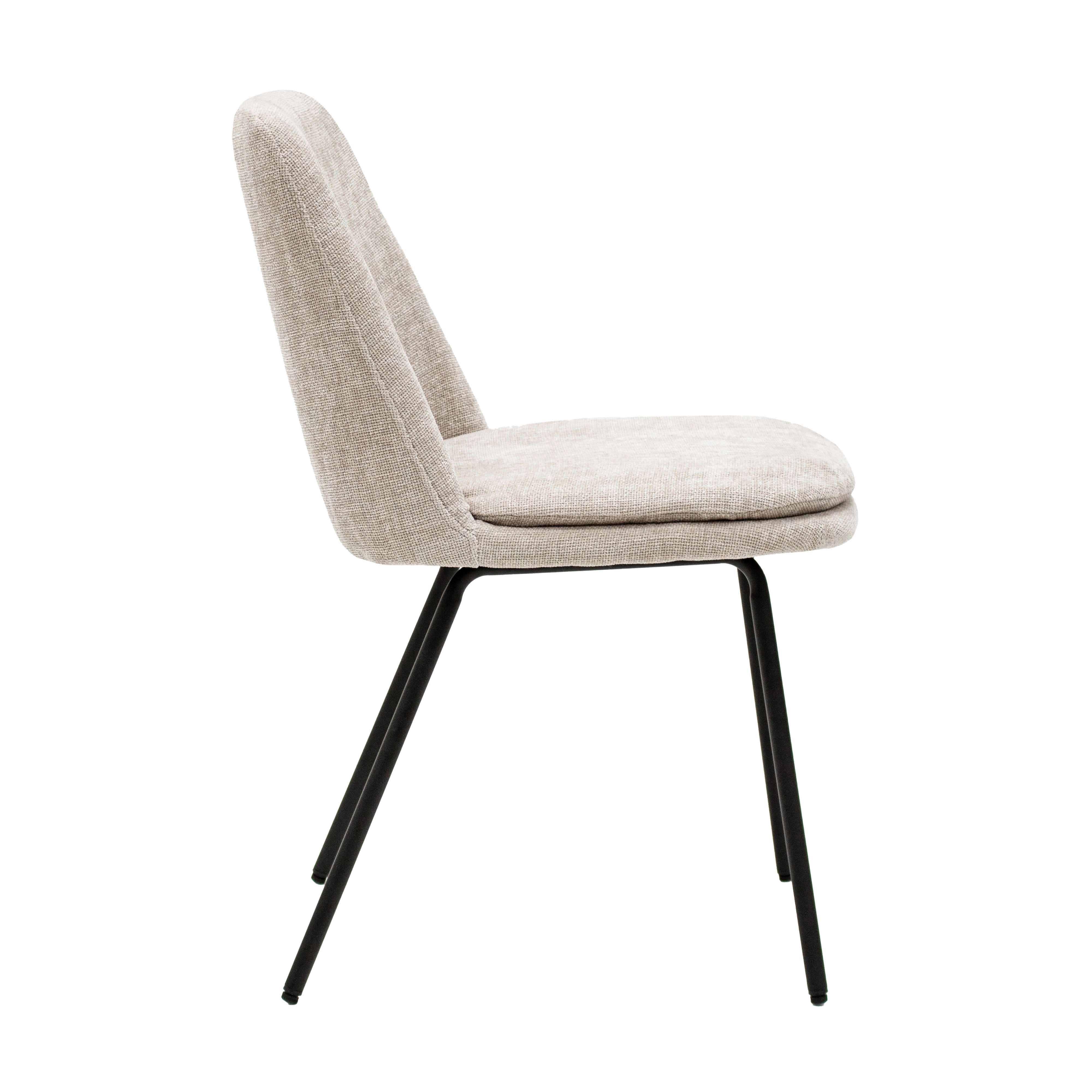 Ontmoet eetkamerstoel Jet! Deze toffe stoel is de perfecte combinatie tussen stoer en stijlvol. De stoel is gehuld is een fijne texture stof en heeft een uitnodigende uitstraling. De zitting beschikt over een comfortabel zitkussen dat afneembaar is wat ervoor zorgt dat de stoel praktisch is in gebruik. Het strakke en stevige metalen frame is een verlengde van de zitting en geeft een prachtige visuele eenheid. Jet is verkrijgbaar in een scala aan kleuren waardoor mixen aan tafel een feestje wordt!