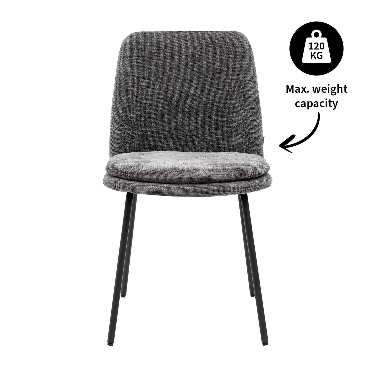 Ontmoet eetkamerstoel Jet! Deze toffe stoel is de perfecte combinatie tussen stoer en stijlvol. De stoel is gehuld is een fijne texture stof en heeft een uitnodigende uitstraling. De zitting beschikt over een comfortabel zitkussen dat afneembaar is wat ervoor zorgt dat de stoel praktisch is in gebruik. Het strakke en stevige metalen frame is een verlengde van de zitting en geeft een prachtige visuele eenheid. Jet is verkrijgbaar in een scala aan kleuren waardoor mixen aan tafel een feestje wordt!