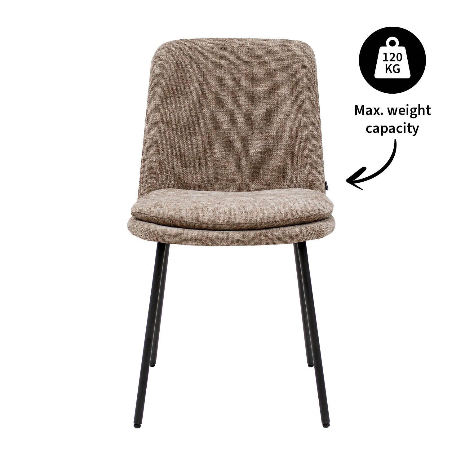 Ontmoet eetkamerstoel Jet! Deze toffe stoel is de perfecte combinatie tussen stoer en stijlvol. De stoel is gehuld is een fijne texture stof en heeft een uitnodigende uitstraling. De zitting beschikt over een comfortabel zitkussen dat afneembaar is wat ervoor zorgt dat de stoel praktisch is in gebruik. Het strakke en stevige metalen frame is een verlengde van de zitting en geeft een prachtige visuele eenheid. Jet is verkrijgbaar in een scala aan kleuren waardoor mixen aan tafel een feestje wordt!