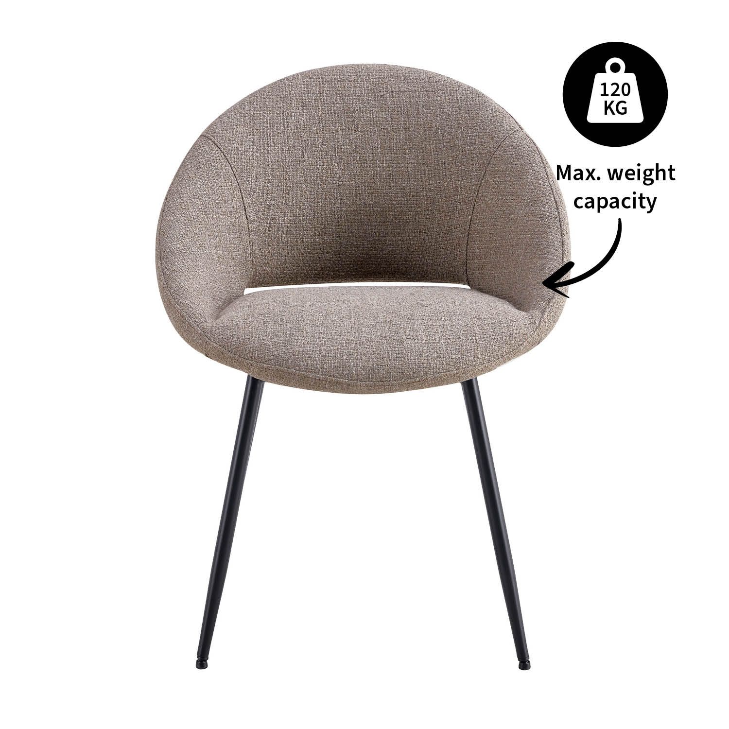 Eetkamerstoel Job is een comfortabele stoel bekleed met een grove textuurstof. Jobs robuuste en toch elegante ontwerp zorgt ervoor dat hij in elk interieur de aandacht trekt. De ronde vorm en smalle opening in de rugleuning geven Job een twist en maken de stoel een echte blikvanger! Job heeft een stevig zwart metalen frame dat ervoor zorgt dat de stoel niet alleen stijlvol maar ook duurzaam is.