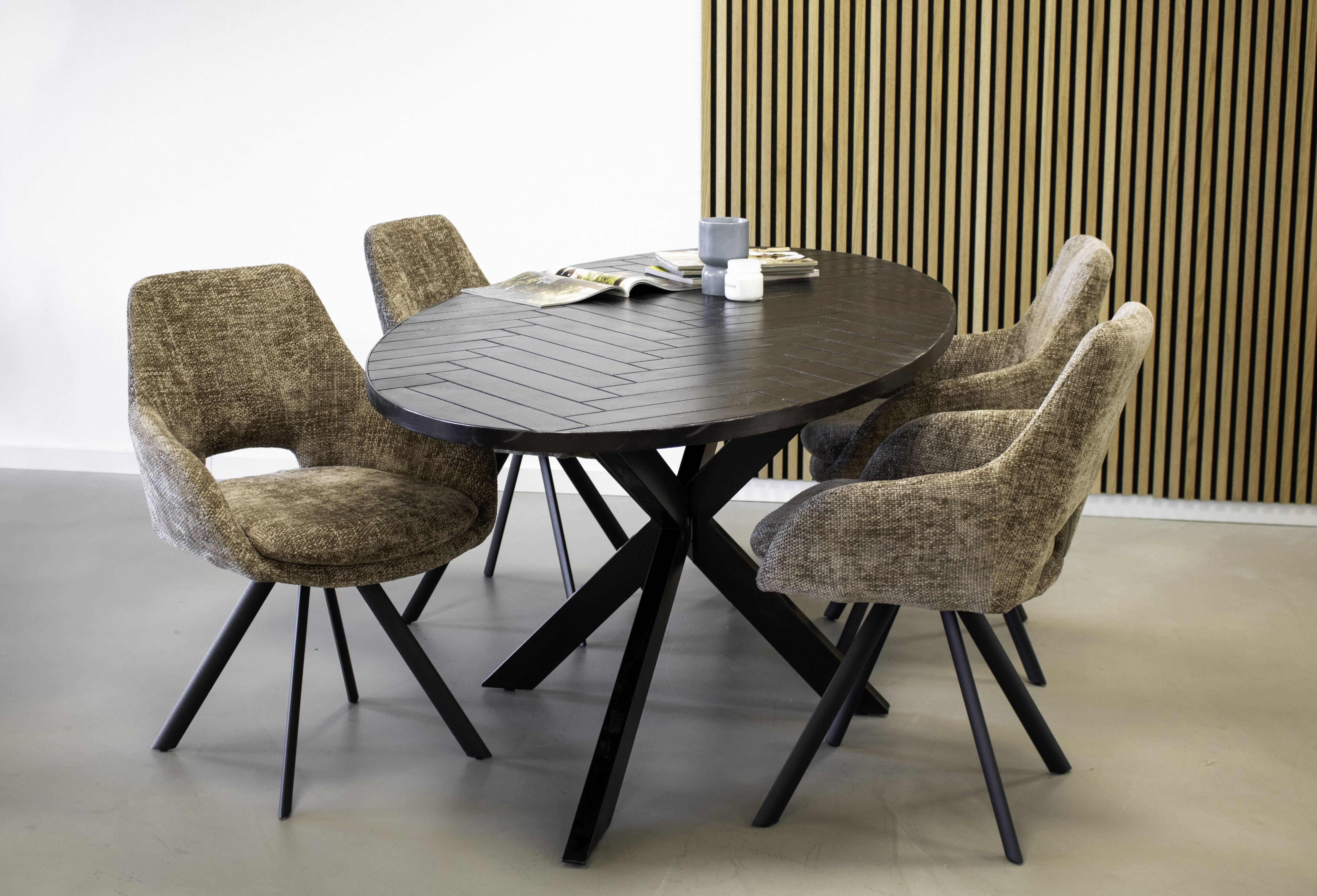 Ontmoet Eetkamerstoel Jorn! Met zijn prachtige Chenille-stof, fijne armleuningen en zacht zitkussen biedt Jorn de perfecte plek om te ontspannen na een lange dag.
