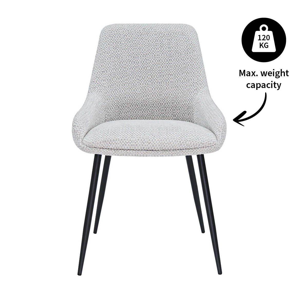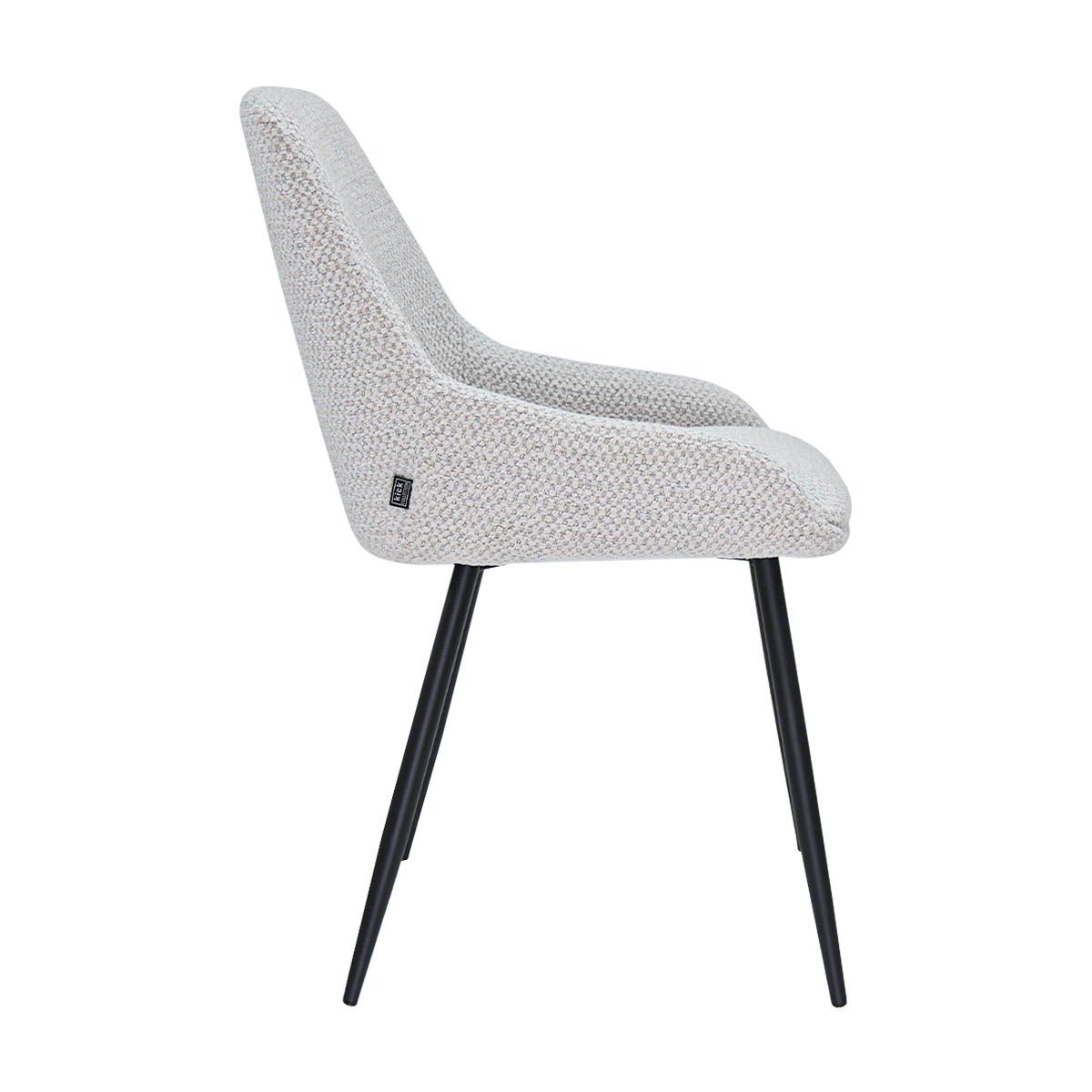 NIKO is een moderne eetkamerstoel met een frisse, eigentijdse uitstraling. De strakke lijnen in combinatie met de comfortabele zitting maken NIKO een echte aanwinst voor iedere eethoek. De luxe, grove textuurstof met kleurnuances geeft de stoel een warme en stijlvolle look, waardoor hij moeiteloos aansluit bij verschillende woonstijlen, van modern tot industrieel en alles daartussenin.