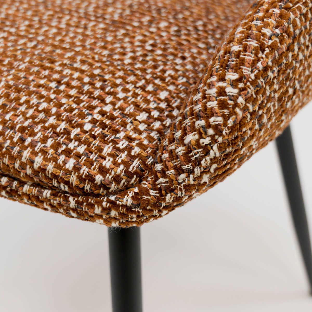 NIKO is een moderne eetkamerstoel met een frisse, eigentijdse uitstraling. De strakke lijnen in combinatie met de comfortabele zitting maken NIKO een echte aanwinst voor iedere eethoek. De luxe, grove textuurstof met kleurnuances geeft de stoel een warme en stijlvolle look, waardoor hij moeiteloos aansluit bij verschillende woonstijlen, van modern tot industrieel en alles daartussenin.