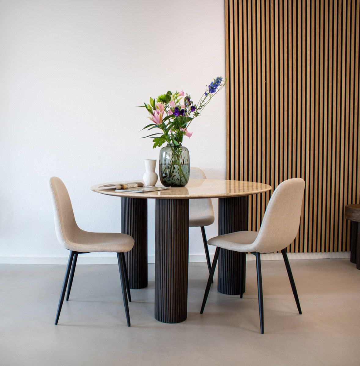 MEET NOOR! Eetkamerstoel NOOR is een comfortabele stoel bekleed met een toffe texture stof. Het onderstel is gemaakt van metaal en uitgevoerd in een zwarte kleur. Eetkamerstoel NOOR past in ieder interieur en is verkrijgbaar in diverse trendy kleuren. Mix & match voor het ultieme kick resultaat!
