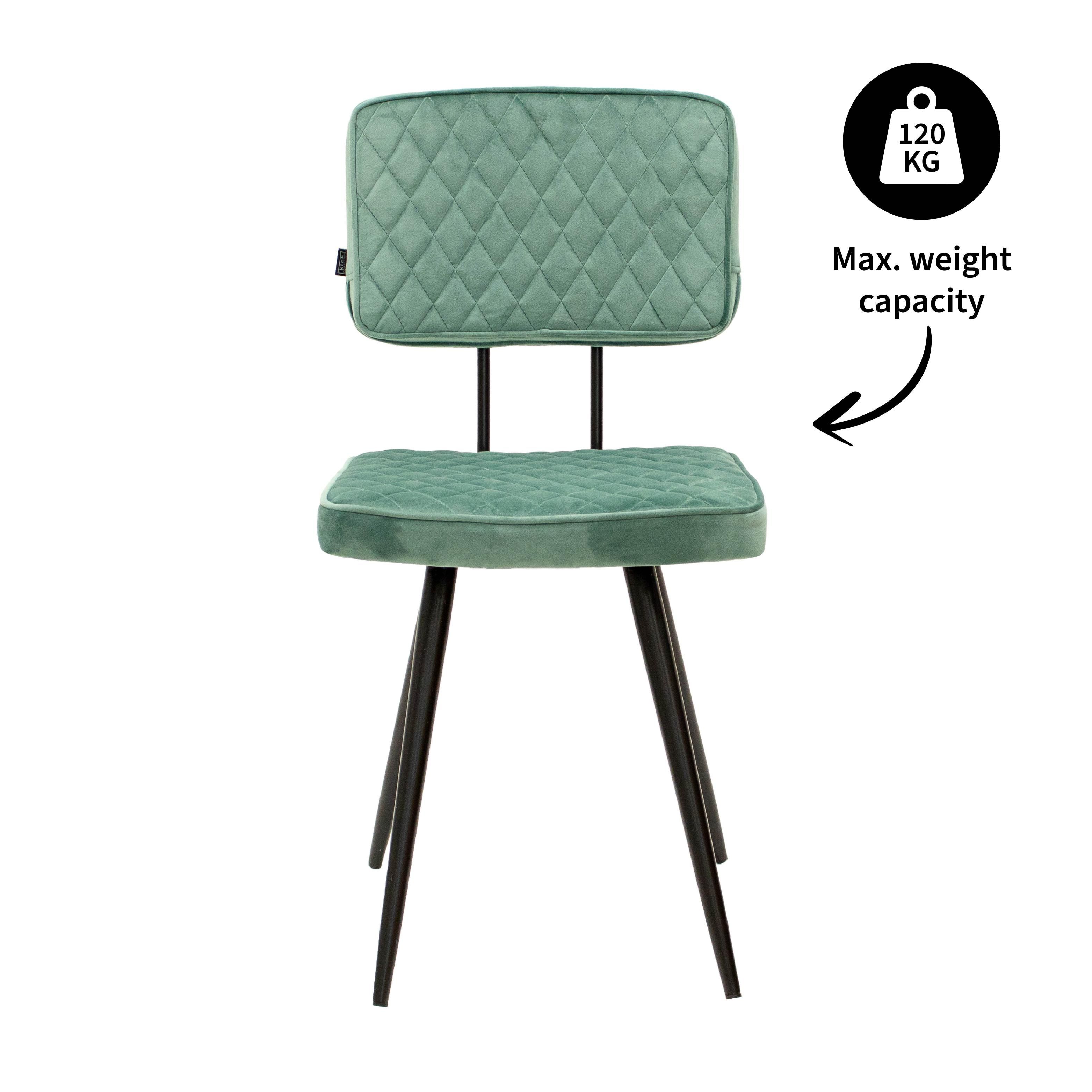 Maak kennis met eetkamerstoel Toby! Toby is de perfecte combinatie van retro en chique. Zowel het rug- als zitkussen is bekleed met onze vertrouwde velvet stof, de stiksels in de vorm van ruitjes maken de stoel een echte blikvanger! Deze toffe stoel heeft een hoogwaardig zitcomfort door de goed gevulde kussens en een stevig metalen frame met elegante ronde poten wat zorgt voor een lange levensduur. Toby is verkrijgbaar in een scala aan kleuren wat de stoel helemaal Kick maakt. Mix and match voor het ultieme resultaat!
