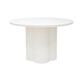 Deze tafel is gemaakt van hout en afgewerkt met een dunne laag beton. Niet alleen mooi om te zien, maar ook stevig en onderhoudsvriendelijk. Het design onderstel, bestaande uit drie afgeronde kolommen geeft de tafel een architectonische look. Minimalistisch, maar met een statement.