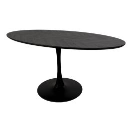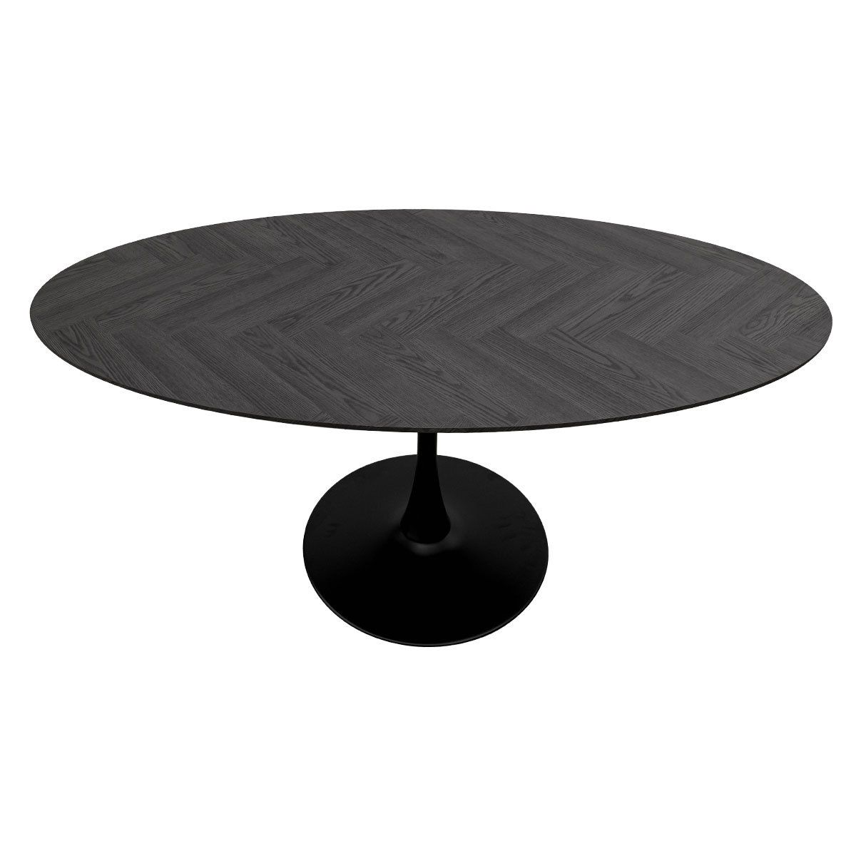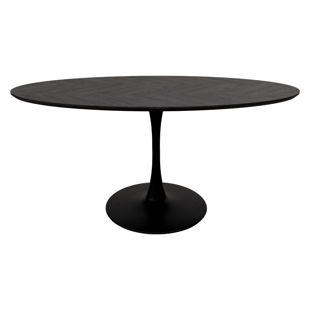 Het zwarte tafelblad met visgraatpatroon geeft de tafel een verfijnd en eigentijds karakter en maakt JARI tot een echte eyecatcher in de eetkamer. De zwart metalen poot zorgt voor een strak contrast en geeft de tafel een moderne, stabiele basis. Door de ovale vorm oogt de tafel licht en uitnodigend, zonder scherpe hoeken, perfect voor gezellige diners en sfeervolle momenten samen.
