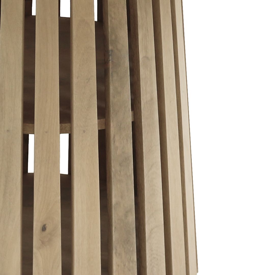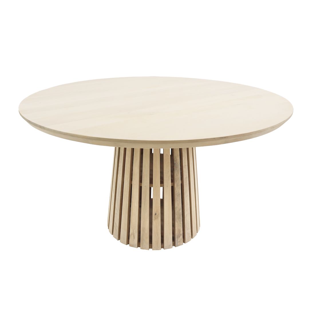 Geïnspireerd op eettafel JOE is onze nieuwe ronde eettafel JUDE ontworpen. JUDE heeft een strak rond blad en een unieke designpoot in cone vorm. De latten met ruimte ertussen op de poot geven de eettafel een luchtige en verfijnde uitstraling. De ronde vorm bevordert een gezellige sfeer, waardoor het een ideaal middelpunt is voor samenzijn met familie en vrienden. JUDE is gemaakt van mangohout met een whitewash coating. Naast haar stijlvolle uiterlijk zorgt dit er ook voor dat de tafel stevig en duurzaam is. JUDE is verkrijgbaar in 2 maten.