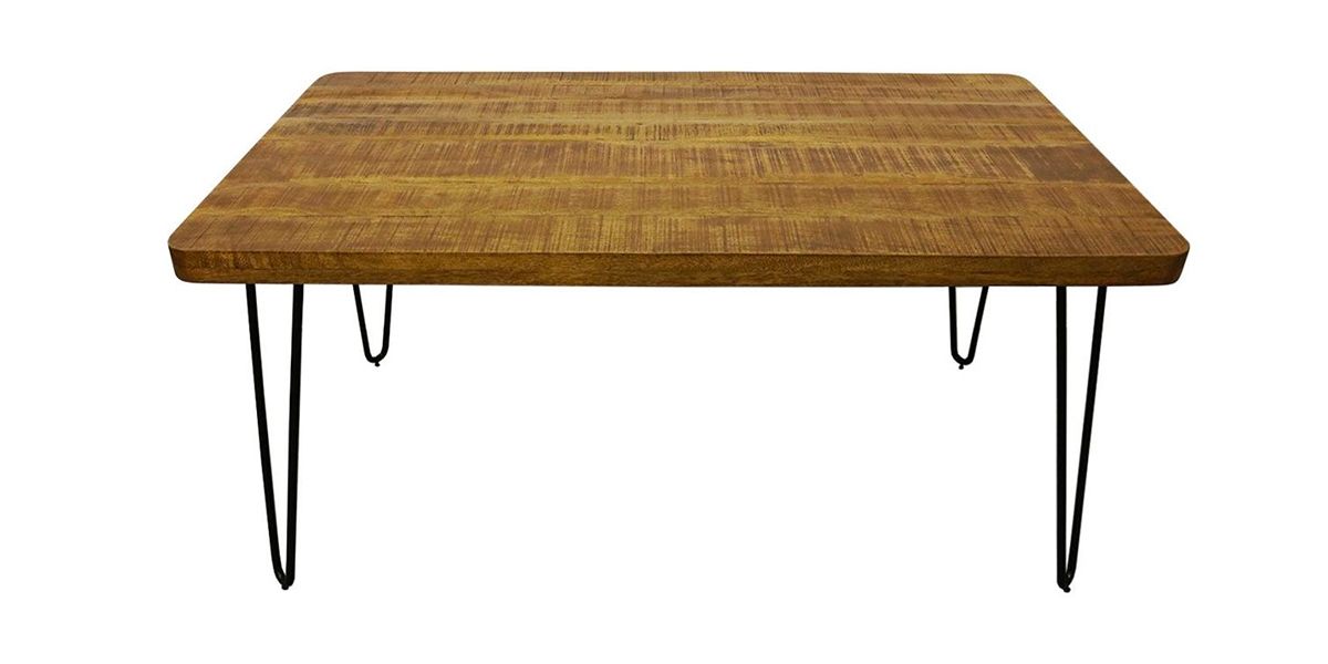 Onze TRIANGLE tafel is verkrijgbaar in een lengte van 200 centimeter, een breedte van 90 centimeter en een hoogte van 78 centimeter. Het karakteristieke tafelblad is gemaakt van massief mangohout en wordt ondersteund door een ijzeren frame met een zwarte poedercoating. De TRIANGLE tafel is ook in een andere formaten beschikbaar.