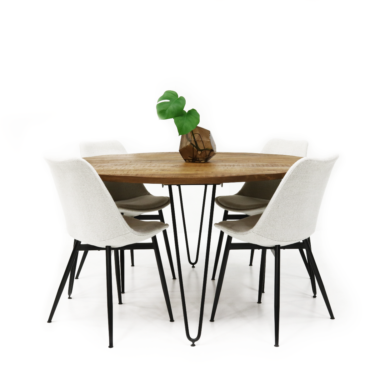 Eenvoud is zo aantrekkelijk. De Mango eettafel rond in 140cm is hier een heel goed voorbeeld van. De combinatie van een stoer massief mangohouten blad met zwarte poten is altijd goed en zal je nooit vervelen. En met zijn compacte formaat is deze tafel perfect voor elke ruimte.