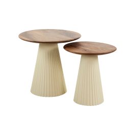 Ontdek onze Salontafel set Alen, een unieke toevoeging aan ons assortiment. Deze set bestaat uit twee tafels van verschillende grootte. Zet ze naast elkaar voor het gebruik als salontafel of plaats ze verdeelt op verschillende plekken in de ruimte als bijzettafel voor meer speelsheid. Het blad, gemaakt van mango hout, straalt warmte en natuurlijke schoonheid uit. Het metalen onderstel met een lichte kleur geeft contrast heeft een opvallende verticale ribbel die het design extra karakter geeft.