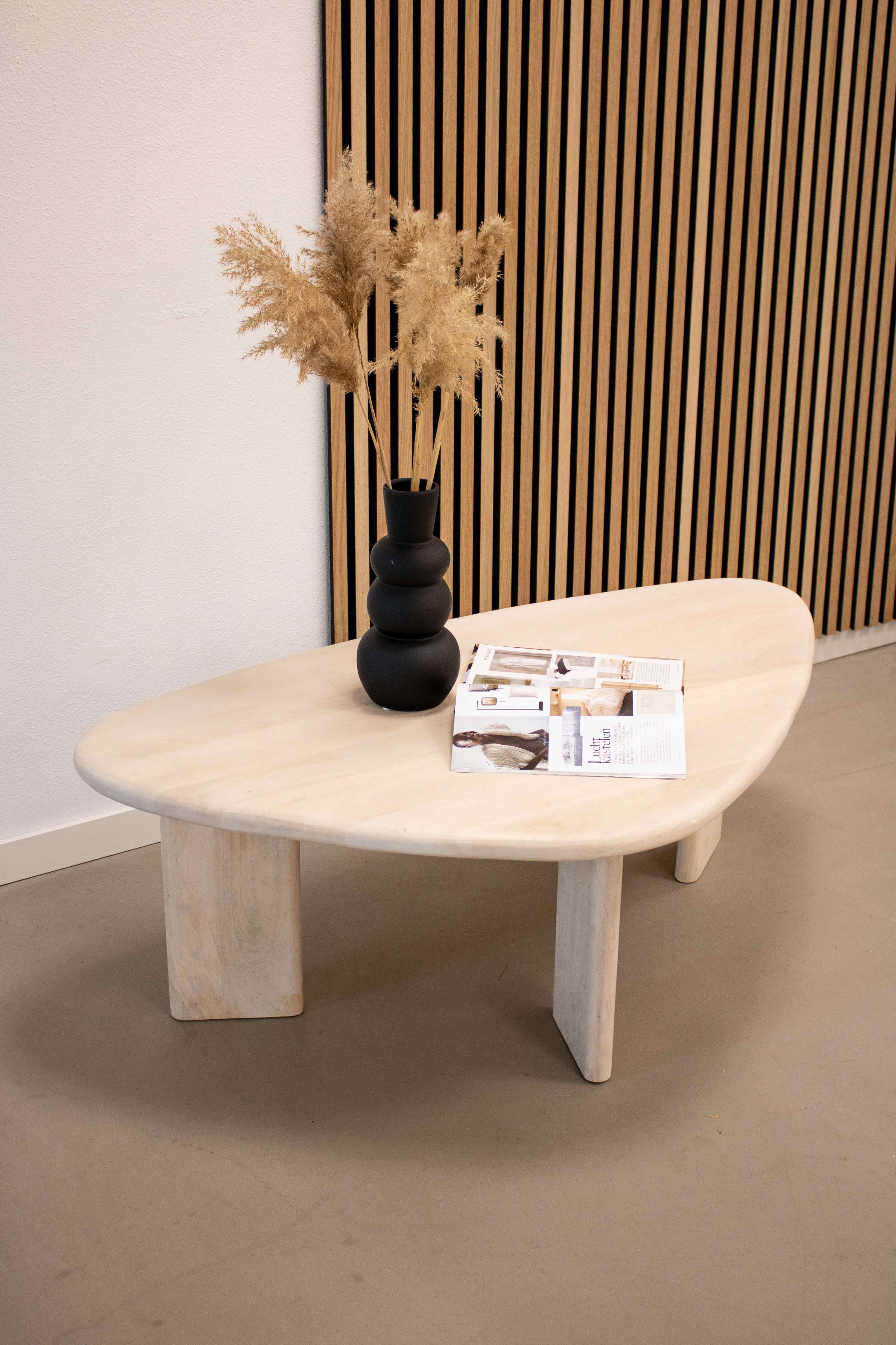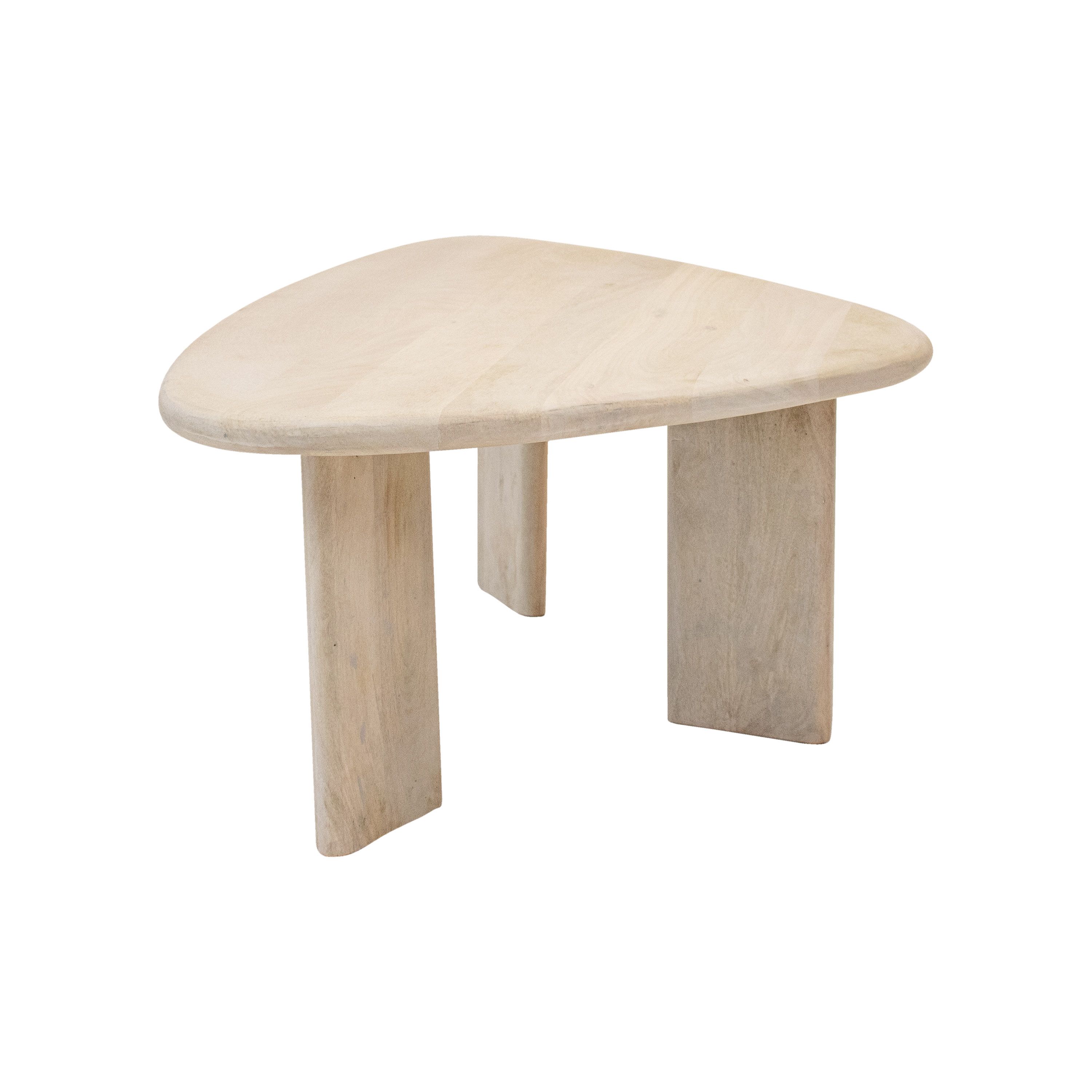 Deze elegante salontafel is gemaakt van duurzaam mangohout met een prachtige whitewash afwerking. Met zijn unieke driepotige ontwerp en organische vorm creëert Nola een moderne uitstraling in je interieur. De tafel is zowel functioneel als artistiek, waardoor het een perfecte aanvulling is voor elke woonkamer. Het gebruik van hoogwaardig mangohout zorgt ervoor dat Nola duurzaam en stevig is, waardoor je er lang van kunt genieten.