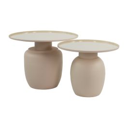Look at Salontafel set Elsa! Elsa bestaande uit twee tafeltjes van verschillende afmetingen zodat ze perfect naast en/of net onder elkaar kunnen staan. Het blad, met een glanzende coating, vormt een prachtige combinatie met het matte, metalen onderstel. Elsa beschikt over een bollige vorm welke geïnspireerd is op de vormen van de authentieke terracotta bloempot.