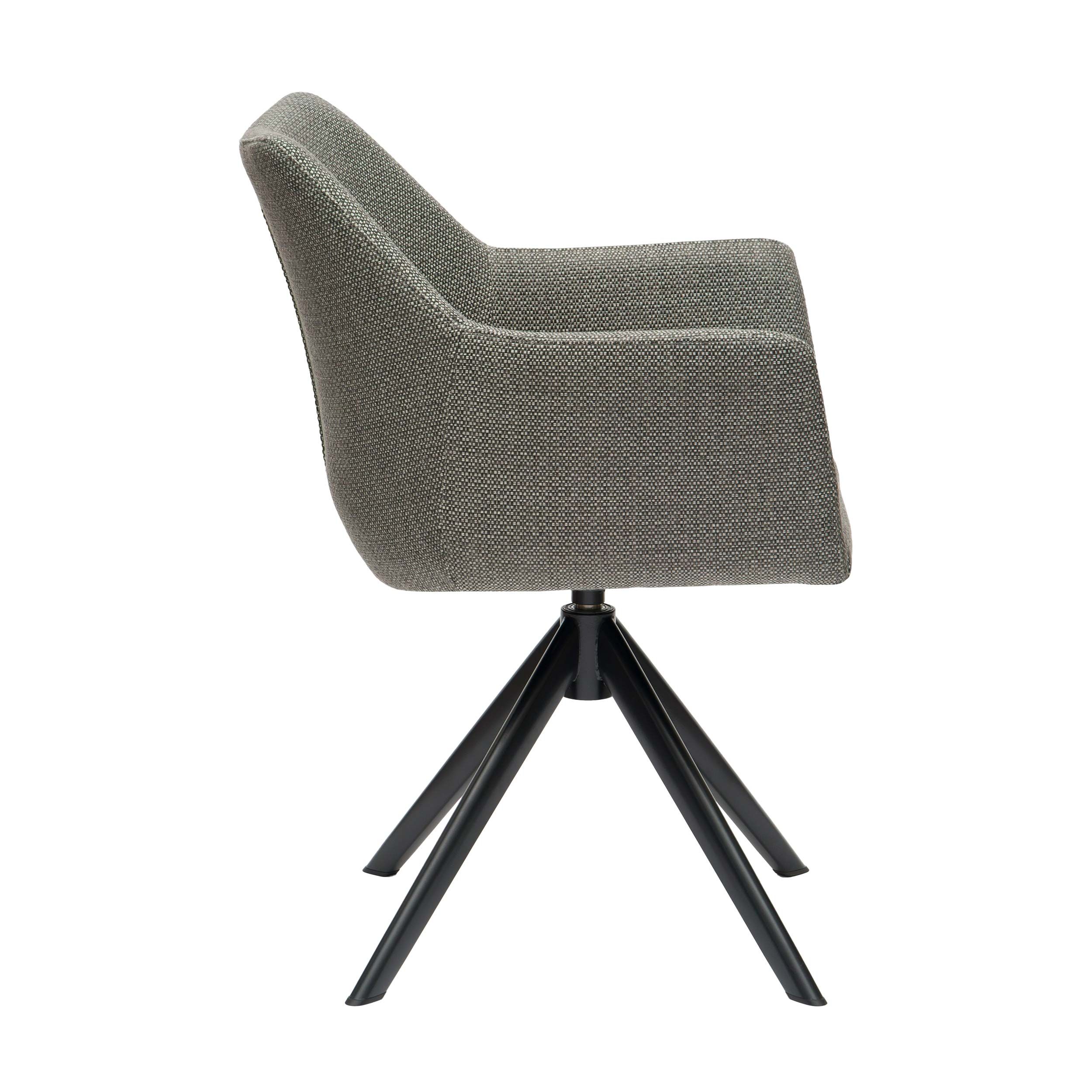 De comfortabele zitting met armleuningen is bekleed met een outdoor textuurstof die waterbestendig is en extra snel droogt. Het frame is gemaakt van aluminium en is afgewerkt met een zwarte lak en speciale coating waardoor de stoel bestand is tegen diverse weersomstandigheden.