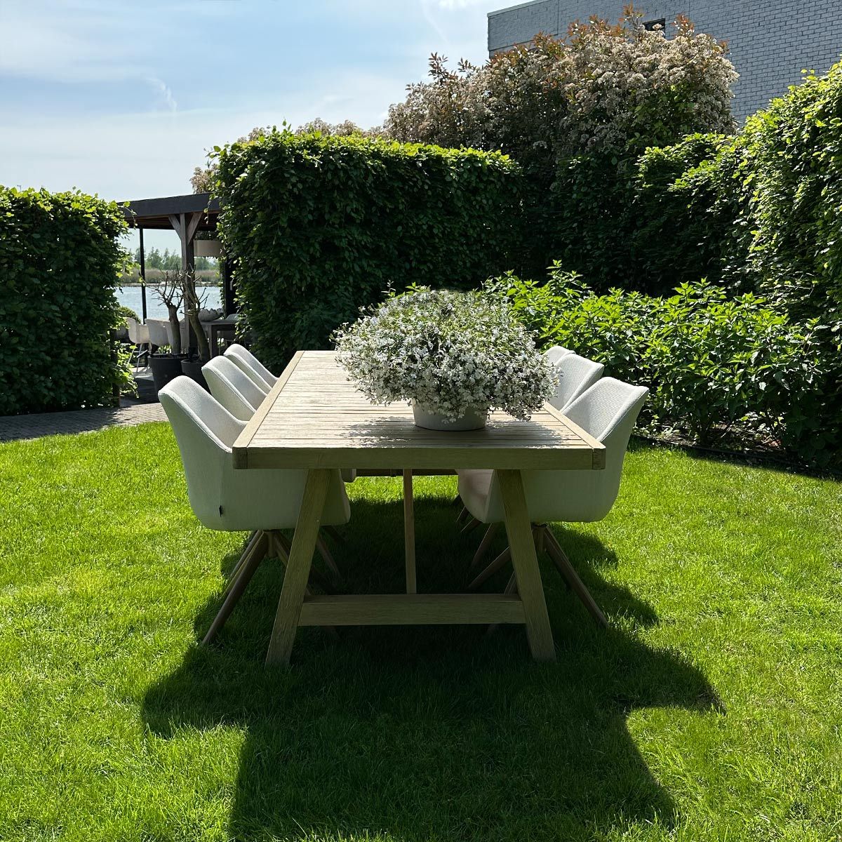 De stoelen zijn super mooi en zitten heerlijk! Maar ik zou de kleur Ivoor niet aanraden voor buiten. Bij ons staan ze onder overkapping maar het lichte stof is zo besmettelijk. Stoelen zijn echt heel vuil & smoezelig geworden en krijg ze niet meer schoon.